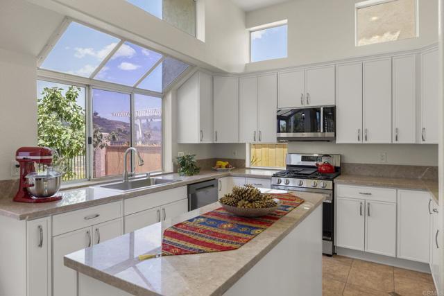 View, View - Turn-Key 5-Bedroom Home with Stunning Views in WoodCrest Hills! Welcome to this beautifully updated 5-bedroom, 3-bath home boasting 2,725 sq. ft. in the highly desirable community of Woodcrest Hills. Enjoy peaceful hills and sunset views from your brand-new balcony off the spacious master suite, with two walk-in closets. One bedroom and a full bath are conveniently located downstairs — ideal for guests or multigenerational living. The fully renovated kitchen features elegant Italian marble countertops, brand new cabinets, walk in pantry, and stainless steel appliances, with built-in air fryer function stove. The interior of the home has been freshly painted and includes new skylights that bring in an abundance of natural light. Additional highlights include brand new fencing around the property, a generous backyard perfect for entertaining, and a freshly painted 3-car garage with a sleek epoxy-coated floor. This family-friendly neighborhood includes a community pool, low HOA fee, and tennis courts, and is located less than a mile from shopping centers, restaurants, and theaters, with easy access to both I-15 and 56 freeways. This move-in ready home is a must-see and won’t last long!