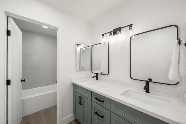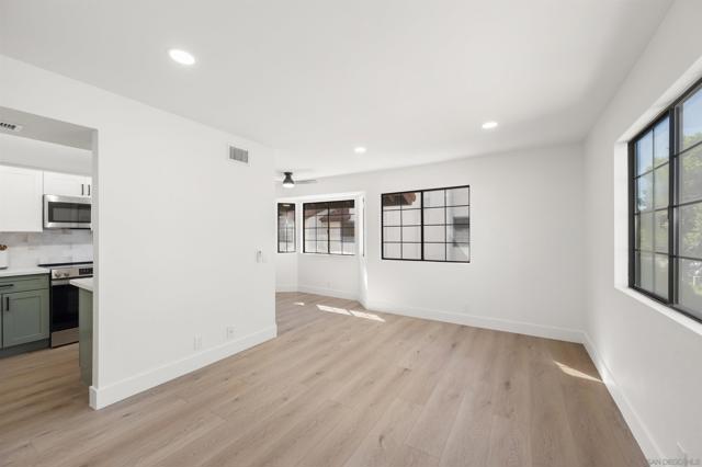Come see this beautiful bright remodeled tri-level end unit in the heart of San Diego! This attached SFR is VA Approved and priced the same as the last model match sale in the community. This turnkey property features stunning upgrades throughout, including brand-new shaker cabinets in the kitchen and bathrooms, sleek quartz countertops, and durable vinyl plank flooring that adds both style and function. Fresh interior paint, updated lighting, and modern fixtures create a bright and inviting atmosphere. Possibility to add optional 3rd bedroom. Located in a desirable neighborhood, this move-in ready gem offers both comfort and convenience. Conveniently located just off the 8 Freeway with access to Mission Valley shopping, Mission Trails, close to SDSU and everything else central San Diego has to offer.