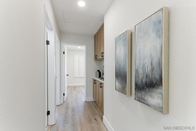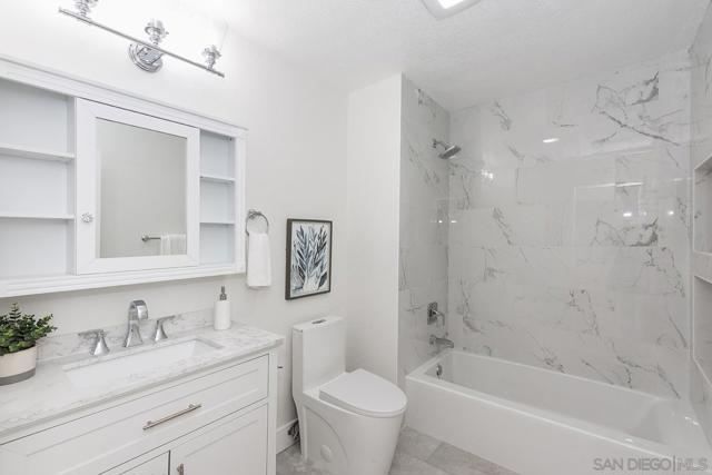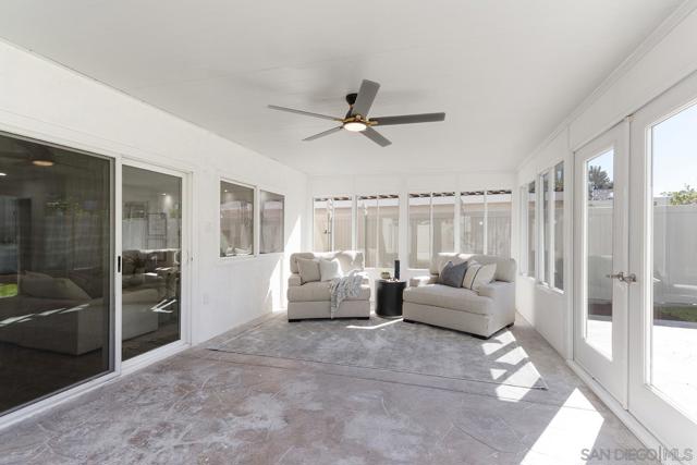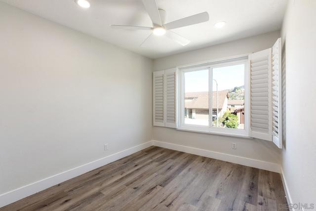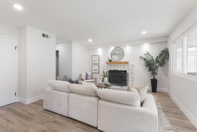 Move-in ready home located on a quiet cul-de-sac in the highly rated Poway Unified School District. This 4-bedroom, 2.5-bath home offers 1,764 sq. ft. of living space with a bonus sunroom. Recent upgrades include a new air conditioner, luxury vinyl plank flooring, baseboards, and new interior and exterior paint. Bathrooms have been fully renovated with new tile, vanities, glass shower doors, and fixtures. The open kitchen features new shaker cabinets, Calacatta quartz countertops, stainless steel appliances, and a custom tile backsplash. The living area features a newly tiled fireplace, adding warmth and charm. Enjoy a spacious front and backyard with refreshed landscaping, new plants, and irrigation repairs. Complete with an attached two-car garage, this home offers comfort, quality, and convenience close to parks, schools, shops, and freeway access.