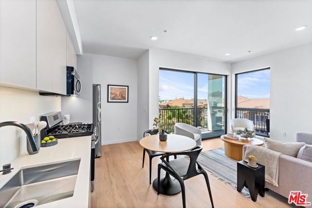 Corner one-bedroom residence with a beautiful wraparound balcony in Mosaika, a brand-new condominium community that blends contemporary sophistication with thoughtful functionality in one of Los Angeles' most vibrant and walkable neighborhoods. This light-filled home features an expansive open layout, floor-to-ceiling windows, concrete floor, and hand-selected designer finishes. The kitchen boasts custom cabinetry and premium appliances, while the spa-inspired bathroom includes a sleek vanity and elegant tile details. Enjoy an oversized balcony perfect for relaxing or entertaining. Residents of Mosaika enjoy boutique-style amenities, including a fitness center and a rooftop sky lounge with BBQ area, lounge seating, and panoramic city views. Mosaika where style meets substance and location meets lifestyle offers an exclusive living experience in the heart of Los Angeles.