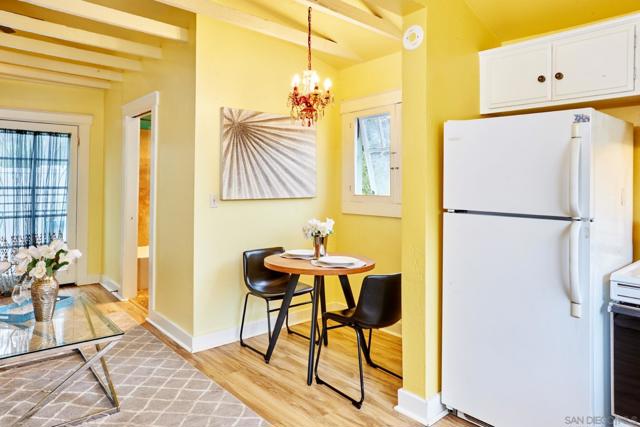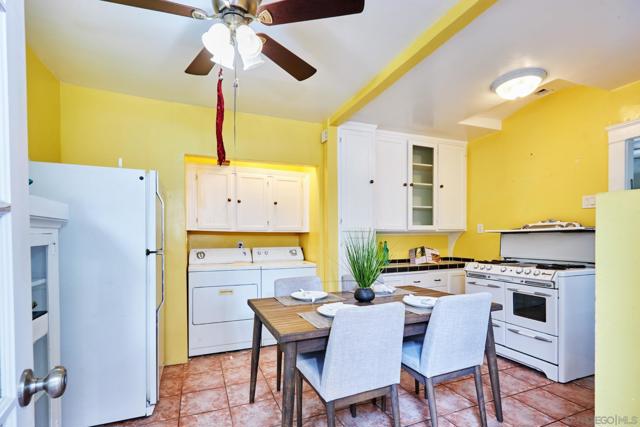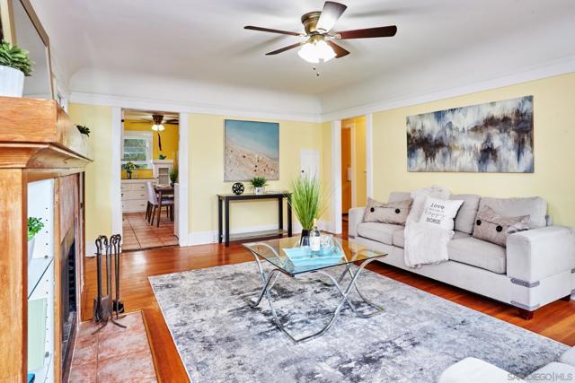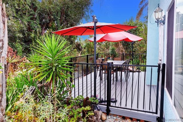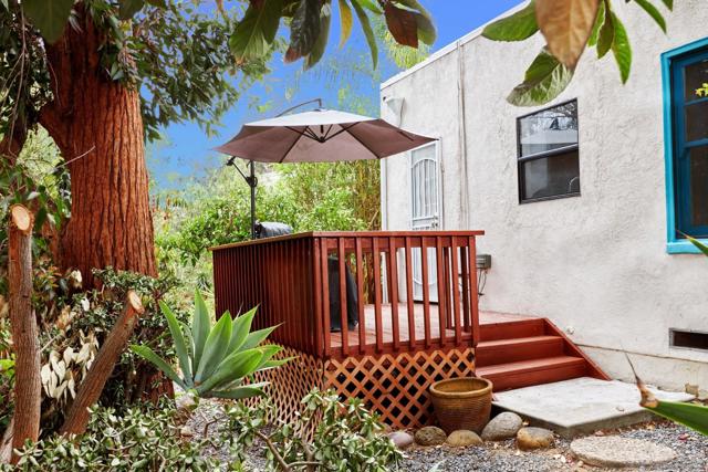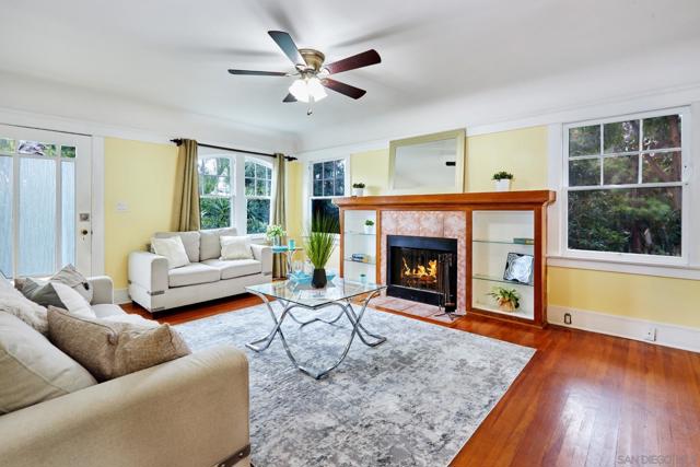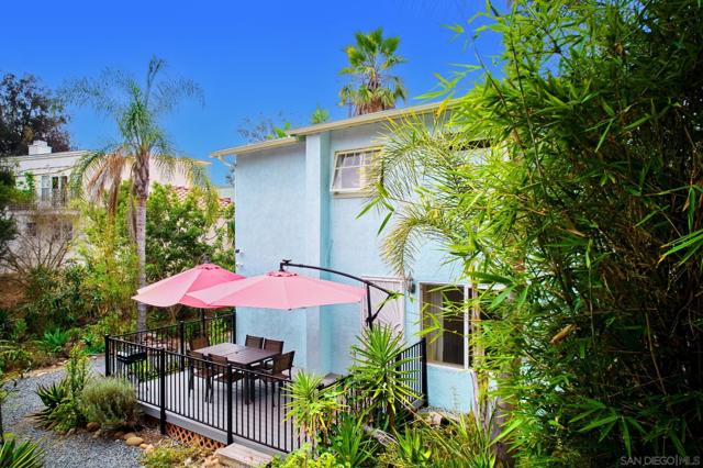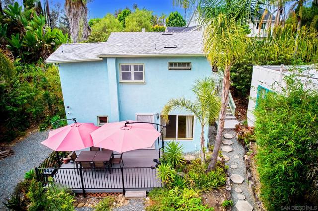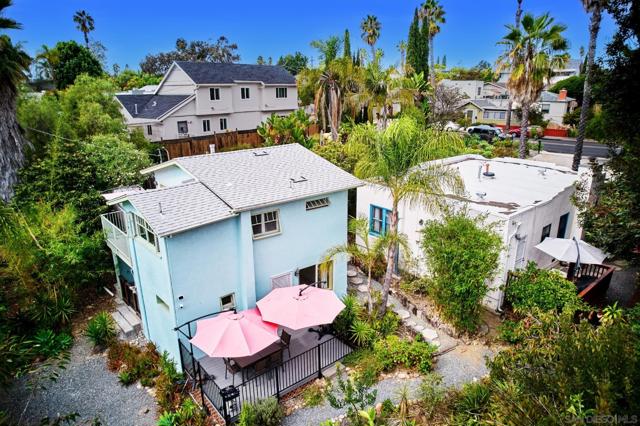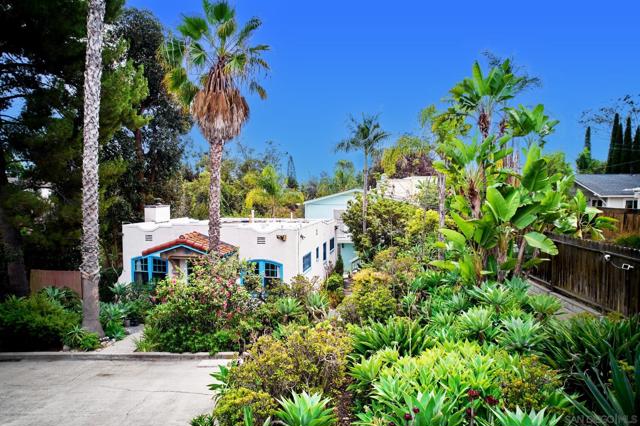 Romantic, vintage, 1,908 s.f. triplex on large, lush lot! Premier North Park location bordering South Park, Burlingame & Balboa Park; short stroll to trendy restaurants & cafes. 2B/1B front house classic 1920s Spanish w/hardwood floors & fireplace. Back units (originally 1890s barn!): gorgeous 1B/1B + 1BA studio. All living spaces with private entries/exits & outdoor decks overlooking Switzer Canyon. Laundry in both buildings. Magical property overflowing with charm & character. Great primary or rental! <<< Ask your agent for the History & Home Improvement Documents. The rear building was originally a barn built in 1895 or earlier. The front 1924 home was brought to this location in 1983. FRONT HOUSE MAJOR IMPROVEMENTS: Complete rewiring and installation for new HVAC system, completely repainted, completely new bathroom, ceiling fans in all rooms, wrought iron fence with automatic car gate and security gates, newish water heater, new roof in 2024, new doors including two new security doors front and back, resurfaced deck>>> BACK HOUSE MAJOR IMPROVEMENTS: Completely repainted, new showerhead, new toilet, new laminate wood flooring, replaced lighting, replaced gas heater with electric heater, total remodel upstairs: new laminate wood flooring in kitchen, living room, bedroom, new natural stone and tile flooring in bathroom, all new bathroom fixtures: tub, sink, toilet, cabinets, new kitchen with granite counter and stainless steel double sink, all new paint, new light fixtures and fans, building exterior re stucco'd, painted, upstairs front entrance porch rebuilt, new roof, new decorative concrete stairs & walkway, iron stair railings, downstairs entry & deck completely replaced with fireproof materials, iron railings, and gate. New security doors, upstairs and downstairs freshly repainted interiors.>>>