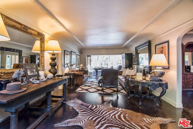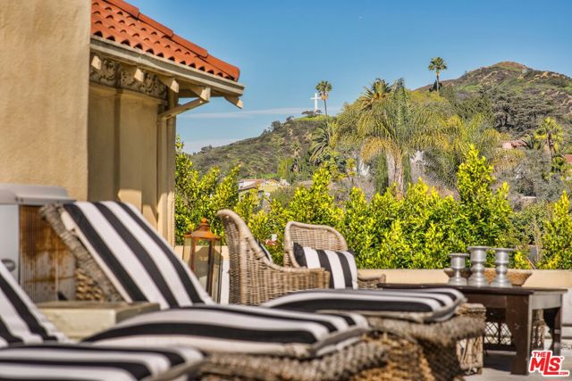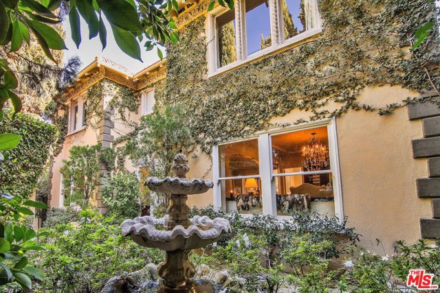 A rare offering in the historic enclave of Whitley Heights, this 1920s Mediterranean residence embodies the romance of old Hollywood reimagined for modern living. Set behind gates and surrounded by mature greenery, the home offers privacy, tranquility, and timeless architecture just moments from the heart of the city. The main level unfolds with a grand living room framed by soaring ceilings, original crown moldings, and arched windows that bathe the interiors in natural light. A formal dining room with built-ins opens to a sunlit kitchen appointed with a gourmet range, Sub-Zero refrigerator, and breakfast nook overlooking the gardens. A home office, guest room or den, and full bath complete the level. Upstairs, two bedrooms and a full bath connect to a rooftop terrace capturing panoramic views of the Hollywood Hills and skyline beyond. On the lower level, a fully private two-bedroom guest suite with its own entrance offers a full bath, living room, and laundry ideal for extended stays, a studio, or creative workspace. Designed for both entertaining and everyday ease, the property's outdoor spaces are a natural extension of the home. Terraced gardens, shaded patios, tranquil fountains, and a koi pond create a setting of rare serenity and character. With 5 bedrooms and 3 baths , this residence honors its historic roots while offering the functionality and flow of modern design. Located within the Whitley Heights Historic Preservation Overlay Zone one of Los Angeles' most architecturally significant neighborhoods this is a true sanctuary of history, artistry, and timeless style.