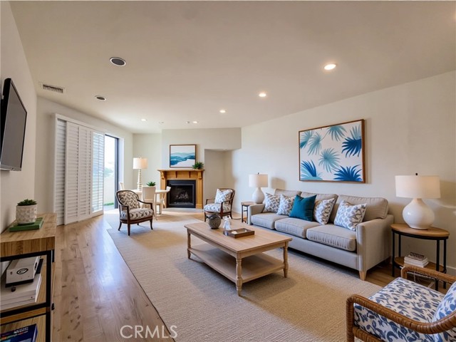 Ocean views that refuse to be ignored, breezes that feel personally delivered, and a townhome that makes Playa del Rey living look effortless. Just steps from the sand, this split-level coastal retreat blends style, comfort, and personality with thoughtful upgrades throughout. The main living level opens to the Pacific in full panorama, anchored by a cozy fireplace, built-in wet bar, and easy flow to the dining area—perfect for relaxed evenings or memorable celebrations. A bonus room on this floor now features brand-new hardwood floors, offering a fresh, elevated feel whether used as an office, den, media room, or optional third bedroom. Upstairs, brand-new hardwood floors continue throughout, enhancing the serene upper level. The primary suite doubles down on indulgence with its own fireplace, a private balcony overlooking the coastline, and a spa-inspired bath with dual marble vanities and a walk-in glass shower. A second bedroom and full bath complete this level with comfort and style. The kitchen is a masterclass in function and flair, with granite countertops, stainless steel appliances, and a double oven that meets every culinary challenge with confidence. Additional highlights include in-unit laundry, a powder room, side-by-side parking with EV charger, and resort-style amenities—pool, spa, gym, sport court, and clubhouse—delivering vacation energy without ever leaving home. From sunrise coffees to sunsets that perform nightly on cue, this home offers a front-row seat to the Playa lifestyle. Sophisticated, effortless, and impossible to forget—this is coastal living done right, with just the right touch of warmth and wit.