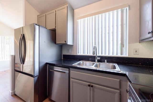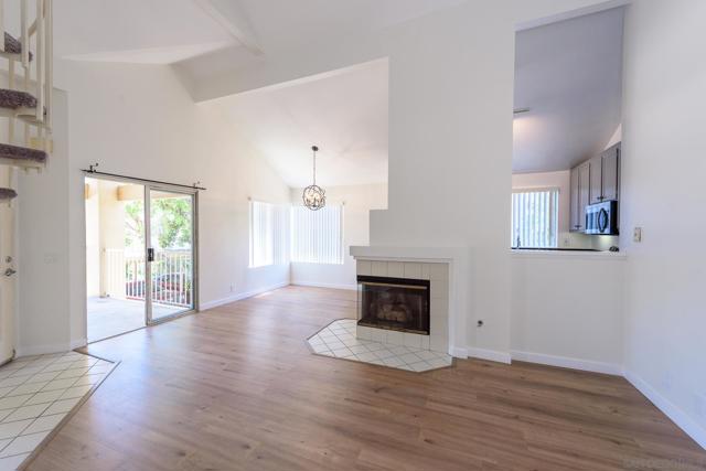 Available DECEMBER 1st! 6 miles from UCSD! A cat or small dog OK! This is ACTUALLY a 2 bedroom, 2 full baths, PLUS a very private 11x9 LOFT (3rd room), freshly painted, Vaulted Ceilings, CENTRAL HEATING AND AIR, NEW LAMINATE WOOD FLOORS throughout, Fireplace, all new refrigerator, dishwasher, microwave, range, washer and dryer on balcony, located very close to Sorrento Valley, easy access to the Freeways, Community parks, hiking trails, and minutes from the Beaches. Complex offers pool, spa, basketball court, volleyball court, 2 Assigned covered parking, plenty of guest parking, etc. Don't Miss This Opportunity!
