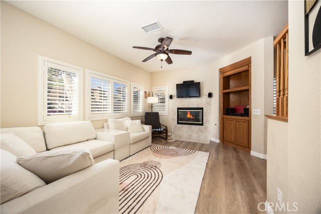 Lovely 3 bedroom, 3 bath home in the gated community of Auberry Place! First floor features an open floor plan with fireplace, dining area, office/bonus space, bathroom, ample storage, and laundry room with pet door to gated dog run. Large, private backyard with tall trees for shade and privacy, plus attached 2-car garage and street parking right outside. Upstairs, all bedrooms include ceiling fans; primary suite has dual sinks and large walk-in closet. Landing offers extra space for a desk/play area. Upgrades include shutters, LVP flooring, newer HVAC, tankless water heater, whole-house water filter, water softener & RO system. Community amenities include pool, spa, and playground, all within walking distance. Wonderful, maintenance-free living, schedule a tour today!