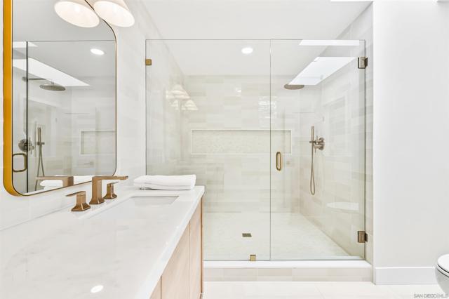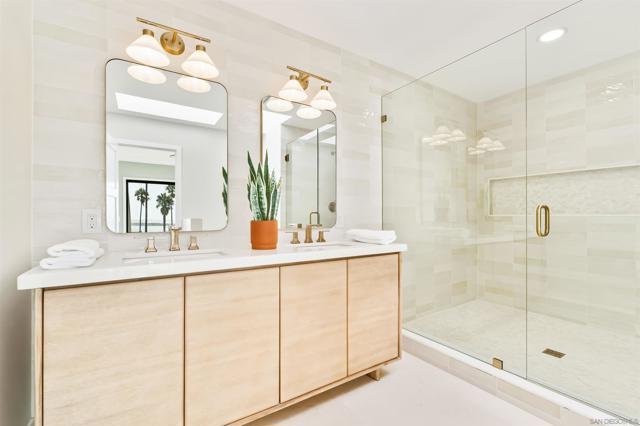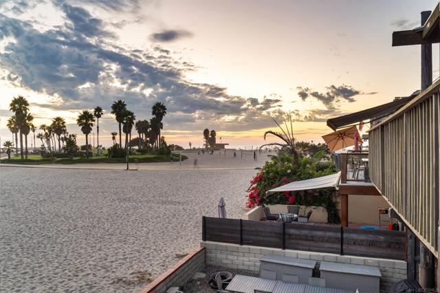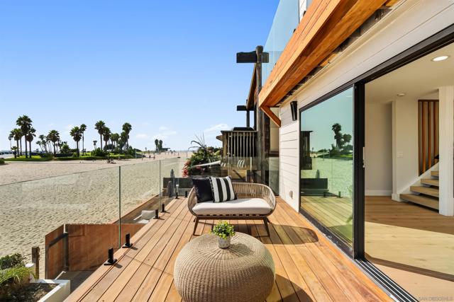 The most private location on Ocean Front Walk! Entertainer’s Dream with Expansive Views! This fully remodeled 5-bedroom coastal retreat is the ultimate San Diego beach house. Designed for entertaining, the outdoor spaces feature multiple decks, a spacious patio with Bromic heaters, Sonos speakers, firepit with seating for 10+, a built-in BBQ, and a wellness area complete with hot tub, cold plunge, and sauna. Natural light pours through Fleetwood doors and Marvin windows, framing breathtaking views of Mission Beach, whitewater in Ocean Beach, boats cruising out to sea, and the cliffs of Sunset Cliffs illuminated at night. The main level boasts open-concept living with a custom kitchen featuring quartzite countertops, wood shaker cabinetry, Dacor appliances, wet bar, and seamless indoor-outdoor flow to the deck. Upstairs, the private primary retreat offers dual closets, a spa-like bath with marble finishes, and panoramic ocean vistas. Two additional bedrooms share their own bath with marble countertops and enjoy access to an east-facing deck for sunrise views. Downstairs, a secondary living/game room with wet bar provides additional entertaining space, along with two more bedrooms and a full bathroom. Newly laid pavers surround the property, creating a clean and modern coastal vibe. Parking for 3 cars included. This home is a rare opportunity to own a luxury entertainer’s paradise in one of San Diego’s most iconic beach communities.