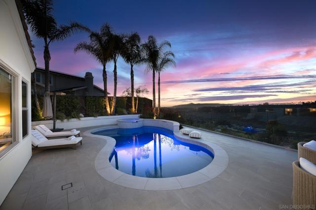 This single-story stunner is located in the sought-after Stonebridge Estates community of Scripps Ranch. It sits on a quiet cul-de-sac with no neighbors across the street and a wide-open canyon behind you. The backyard was built for entertaining, with a big BBQ island, pool, spa, and glass fence to enjoy your mountain and sunset views. The interior features travertine flooring, an updated kitchen, and a vast living space that flows flawlessly into your backyard. The location within the community offers easy access to Sycamore Canyon Park's playground and fields. Residents of this community love the easy access to nature and being in Poway Unified School District.