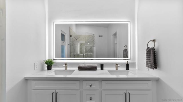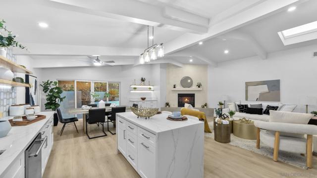 Completely renovated coastal gem with stunning Mission Bay views! Welcome to 4909 Pacifica Drive in Pacific Beach, a beautifully reimagined 3-bedroom, 2.5-bath home that blends modern luxury with coastal charm. Step inside to discover brand-new luxury vinyl plank flooring, skylights that fill the living spaces with natural light, and a fresh full interior and exterior paint job. The custom kitchen shines with stainless steel KitchenAid appliances, a stylish backsplash, and ample storage, while the bathrooms boast glossy ceramic tile, LED mirrors, and new fixtures. Enjoy comfort and efficiency with new LED lighting, ceiling fans in every bedroom, a tankless water heater, and a PAID-OFF Sullivan Solar Power system. A true highlight of this renovation is the newly added, fully permitted, oversized laundry room and custom-built walk-in pantry - designed for ultimate convenience and functionality. These thoughtful additions elevate daily living with modern organization and extra space rarely found in Pacific Beach homes. The primary suite offers a large walk-in closet and sliding glass door leading directly. Outdoors, relax and take in bay views from the bar-top railing, relax on new turf, and entertain on fresh exterior tile patios. Every detail has been upgraded- from the new sewer main and drains to the new garage door. This turnkey home is a showcase of quality, design, and energy efficiency in one of San Diego’s most desirable neighborhoods. Experience coastal living at its finest at 4909 Pacifica Drive, Pacific Beach - where every sunset over Mission Bay feels like home.
