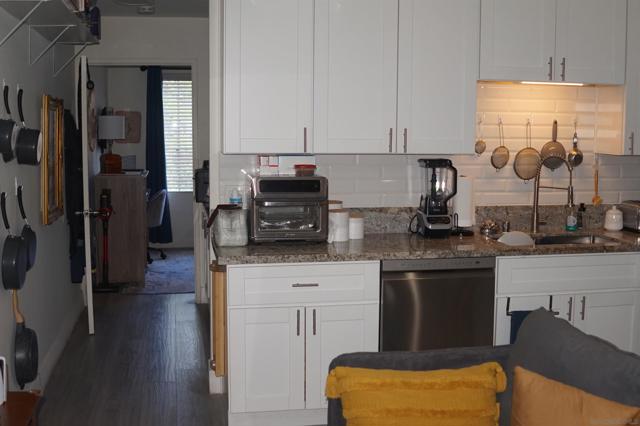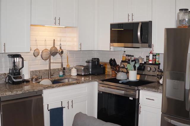 Hacienda Gardens - Age restricted to 55+ to occupy. 36 unit condo complex in 3 story build out. Each level has its own laundry area. This is a 2nd floor unit which has recently been upgraded - laminated flooring - stone countertops-cabinets, new appliances with walls in neutral tones. Ceiling fans added in living area and bedroom. Virtually all furnishings can be included with offer. Great access to bus, shopping and YMCA which is easy walk across street. Common area courtyard and stairs or elevator used for access to unit.