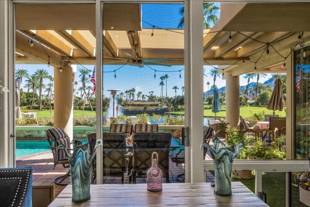 Welcome to your dream home located in the prestigious Desert Horizons Country Club in the very heart of Indian Wells. Close to shopping and performance venues in the Coachella Valley VIP events, such as the BNP Paribis Open, the Coachella Festival, Stagecoach Festival and much more! Beautiful and inspiring 270 degree views of mountains, a serene lake with fountain, and perfectly manicured fairways! This exquisite home boasts 2 bedrooms and 2 baths in the main house. Additionally, a detached casita or a Junior ADU with a lovely spacious bedroom and ensuite bathroom, perfect for accommodating guests or a serene home office space. The kitchen is newly renovated, a haven for the food enthusiasts! Beautiful and spacious quartz counters, storage sliders for easy retrieving of food staples, new double ovens, dishwasher. The family room includes a bar with views out to the beautiful pool and awesome views of the lake, mountains and 18th green of the golf course which provide lovely entertaining areas. The soaring ceilings in the living room help flood the space with natural light. The primary suite serves as a private sanctuary with an ensuite bathroom that includes a soaking tub and separate walk-in shower and a huge walkin closet. The second bedroom is spacious with a walkin closet and ensuite bath with a walkin shower. The garage is spacious and includes a golf cart space. plus 3 Tesla Batteries charging station. Desert Horizons includes tennis and pickle ball courts, gym, club dining and more!,