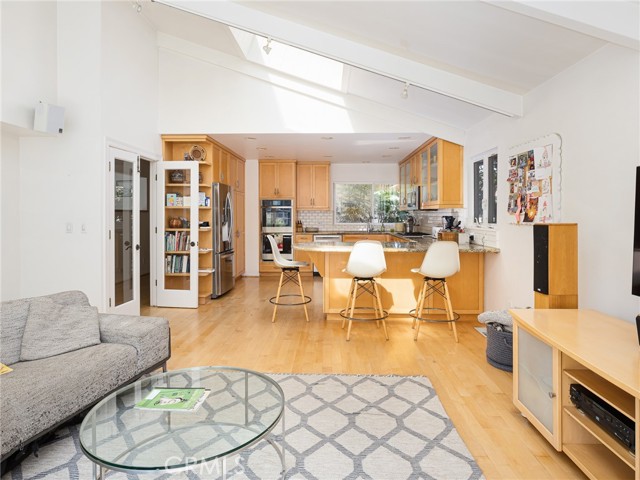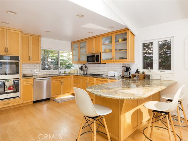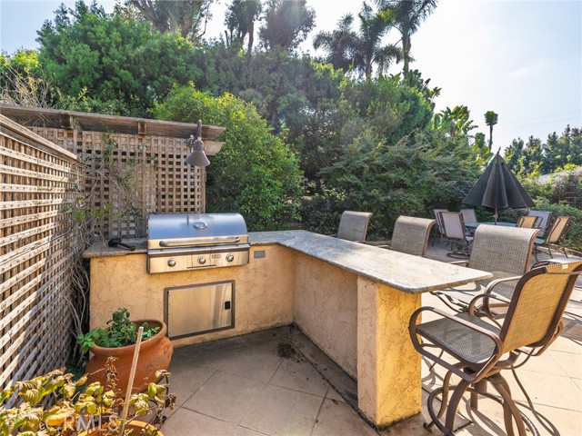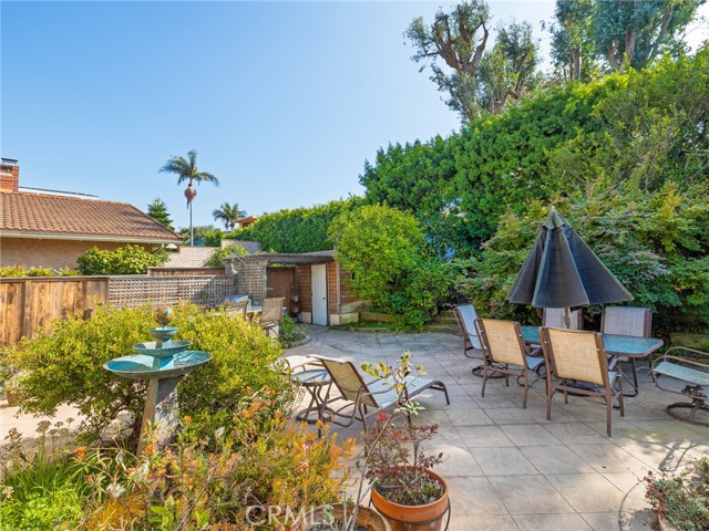 Spacious home with exceptional indoor-outdoor living! This beautifully maintained, ~2600 square foot residence offers an ideal blend of comfort and functionality throughout. The main level features an open concept kitchen with plenty of cabinet space, a large peninsula, five burner Thermador stove, double oven, and a dishwasher. The kitchen opens directly to the inviting living room which presents high ceilings, skylights, a fireplace, and a wet bar with a mini-fridge. Across the hallway from the kitchen, the large dining area connects directly to the family room which also features a fireplace, high ceilings, and built-in storage. The living and the family rooms both provide direct access to the sizeable and private backyard—an entertainer’s dream showcasing a built-in outdoor grill with a dedicated gas line and peninsula, a garden shed, hot tub, fountain, California native plants, and mature fruit trees (two lime, one lemon, and one tangerine). The dining area also opens to its own serene garden space on the west side of the home. Back inside, all bedrooms are situated on the main floor of the home. The large primary suite includes a balcony, two closets (including a walk-in closet), and an en-suite bathroom with dual vanities and a shower. The second and third bedrooms are generously sized and each have walk-in closets, while the fourth bedroom can similarly serve as a great bedroom/office. A full bathroom with dual vanities, a shower, and a tub is conveniently positioned between the other three bedrooms. Moreover, a convenient half bathroom sits just off the entry, perfect for guests. Downstairs features an oversized laundry room with access to an immense storage area under the home as well as a two-car garage with built-in storage. Additional highlights include central heat, recessed lighting, built-in cabinetry, and abundant storage throughout. Combining open spaces, an ideal layout, and lush outdoor amenities, this home offers versatile living in a peaceful and private setting.