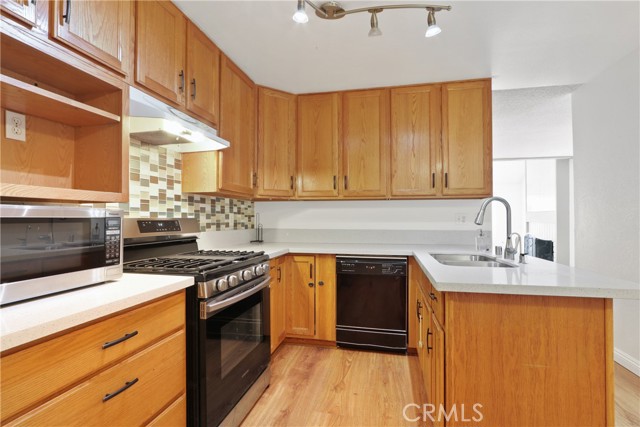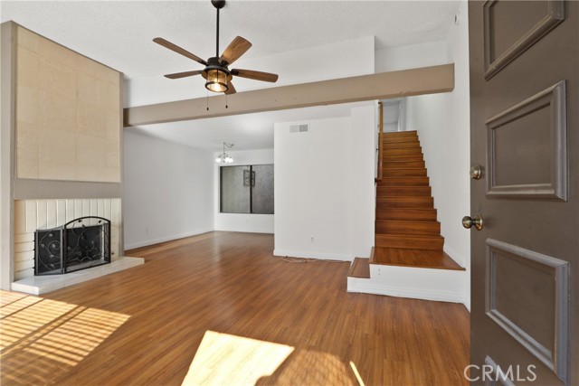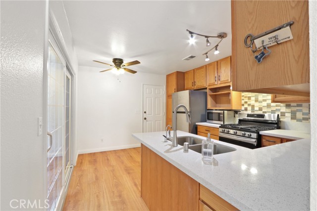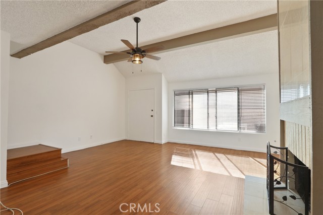 Welcome Home! - Bright and airy 2-bedroom 1.5 bath is move in ready. Home is newly painted throughout and showcases laminate flooring throughout the home. Spacious kitchen with newer oak cabinets and granite countertops, just located adjacent to the kitchen is wonder private patio for relaxing and reading after a hard day at work, or makes a wonderful play space for kids. Spacious living room with gas fireplace. Upstairs you will find 2 oversized bedrooms, each with ample closet space and ceiling fans. Updated bathroom features new double vanity and tub shower combo. Parking is breeze with the 2-car attached garage, complex provides ample parking for guests. Community features BBQ, Spa and pool.