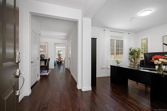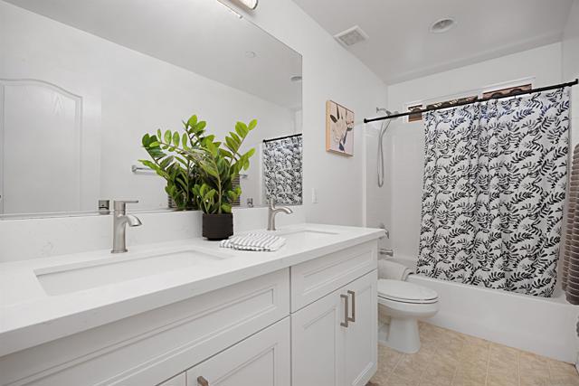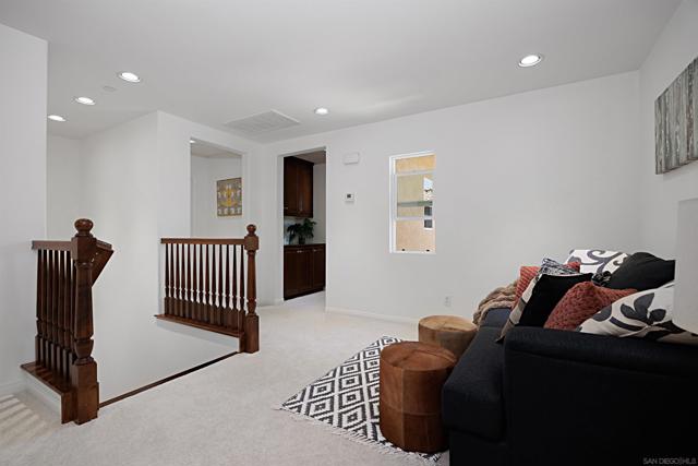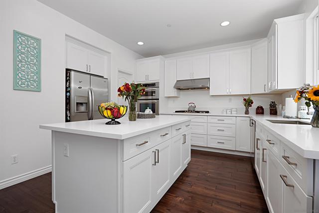 Experience contemporary comfort and timeless style in this beautifully remodeled 5-bedroom, 3-bath residence offering 3,079 sq. ft. of exceptional living space. Ideally situated within the highly sought-after Poway Unified School District, this home blends sophistication, functionality, and family-friendly design. The open-concept floor plan showcases a bright, gourmet kitchen featuring a brand-new quartz island, custom white cabinetry, and premium stainless-steel appliances. The kitchen flows seamlessly into the dining area and spacious family room with a cozy fireplace—perfect for both everyday living and entertaining. A main-level bedroom and full bath provide flexibility for guests, a home office, or multi-generational living. Upstairs, the luxurious primary suite impresses with dual walk-in closets and a spa-inspired bathroom featuring a large walk-in shower and abundant natural light. Four additional bedrooms, a versatile media/bonus room, and a dedicated laundry room complete the upper level. Enjoy the best of California living with effortless indoor-outdoor flow. The private, low-maintenance backyard is surrounded by mature trees, offering a serene setting for relaxation or entertaining.