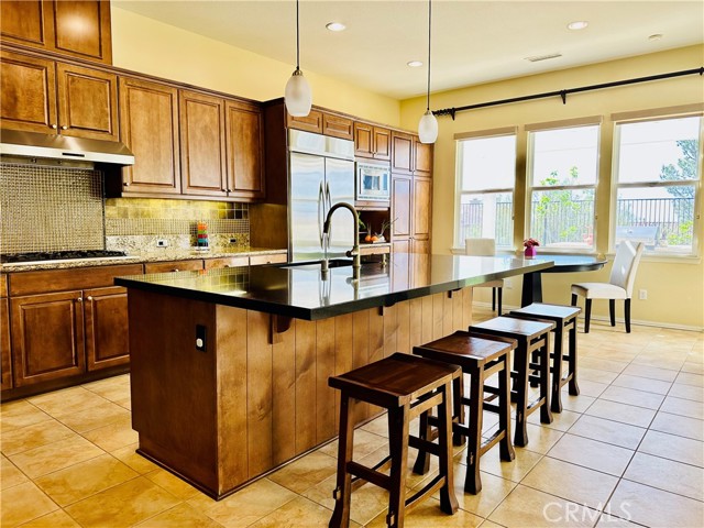 Discover an exceptional chance to own a luxurious single-story former MODEL home perched atop the hills of Porter Ranch! Move-in ready and meticulously maintained, this elegant residence showcases remarkable craftsmanship in the prestigious guard-gated Renaissance community. Welcome to 20318 Via Urbino — a designer home with a south-facing backyard offering privacy, beauty, and designer's touch throughout. 4 bed 3.5 bath, 3 car garage, built in 2009. Step through the inviting stone paved courtyard into a spacious open-concept floor plan featuring an airy living and dining area with a cozy fireplace. The bright family room and gourmet kitchen offer seamless flow, equipped with a Viking range, upgraded stainless steel refrigerator, double ovens, microwave, dishwasher, granite counter tops, and a versatile centra island. Neutral tone wall paint, custom tile and wood floors, recessed lighting throughout. The private backyard retreat includes a built-in BBQ, a covered patio, fruit trees, lush greenery, and ample space for gardening — all bathed in sunlight with no rear neighbors overlooking. Additional features include: Newly installed artificial turf in the front yard (low maintenance), 240V / NEMA 14-50 plug in garage, ready for EV charger installation, tankless water heater, automatic sprinkler system, three Google security cameras and smart front door lock, TV mount in family room (fits up to 85" TV, included in sale). Some furniture and wall art pieces are included. Residents enjoy exclusive access to two tennis courts, nearby parks with pickleball and basketball courts, playgrounds, and hiking trails. The award-winning Porter Ranch Community School (K-8) is within walking distance. The Vineyards at Porter Ranch and Walmart shopping centers are just minutes away, offering Whole Foods, fine dining, boutiques, and entertainment options. Prime location with easy access to 118, 210, 405, and 5 freeways.