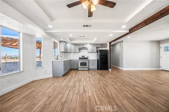 Welcome to your own private ranch Hesperia! This charming 3-bedroom, 2-bath home sits on an impressive 1.72-acre corner lot, offering completely usable land with endless possibilities. With three separate entrances, two providing direct access to the backyard. Whether you dream of building additional structures, creating a horse property, or designing your ideal ranch setup, this lot gives you the freedom to make it happen. The agricultural zoning allows for animals, gardens, and all your country living ideas. The exterior features a chicken coop and plenty of open space for RV parking, trailers, or future projects. Step inside to find a comfortable layout with newer flooring and paint throughout, an updated kitchen featuring modern cabinets and granite countertops, and central heating and cooling for year-round comfort. This is a rare opportunity to own a well-maintained ranch-style home with nearly two acres of flat, fully usable land. Bring your animals, toys, and imagination!
