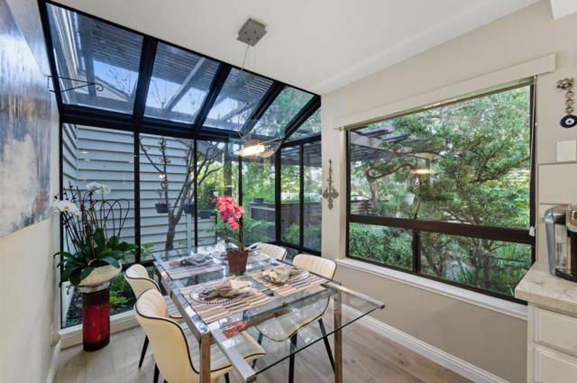Elegantly tucked away on a quiet cul-de-sac, this beautifully updated home offers exceptional privacy with no front or rear neighbors, plus tranquil hill views. Mature trees & drought-tolerant landscaping blending natural serenity with modern comfort. Inside, enjoy uniform wood floors throughout and an open layout ideal for entertaining. The chefs kitchen showcases a leathered marble island, Taj Mahal quartzite countertops, Italian glass backsplash, and high-end stainless appliances. The living and dining areas feature a modern electric fireplace and sliding doors opening to a covered patio for year-round enjoyment. Multiple dining spaces include a formal dining room, a cozy breakfast nook, skylit glass enclosure with bright garden views. The primary suite boasts a spa-inspired bathroom with an oversized linear-drain shower, built-in seat, quiet Bluetooth fan, dual sink vanity, new cabinetry and fixtures, plus a large walk-in closet with custom organizers. Smart home features include a digital door lock, Nest thermostat, and smart landscape lighting. Inside laundry room with utility sink, and an oversized two-car garage with extra golf cart parking. A new furnace was installed in 2023. Move-in ready. This home is a rare find in one of San Joses premier gated 55+ communities.