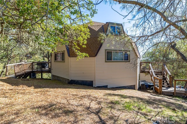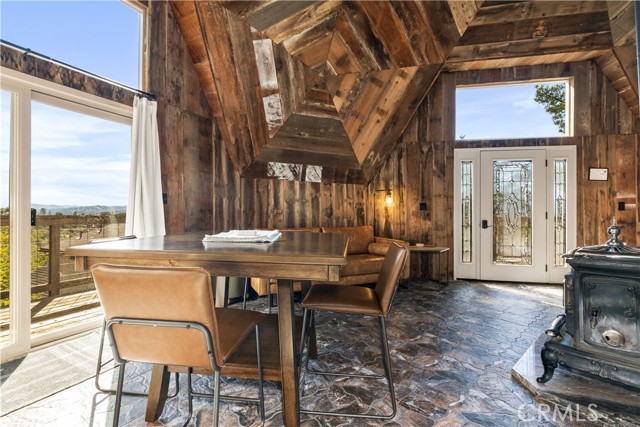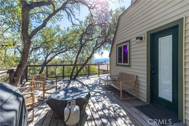 Nestled in the serene hills of the Oak Shores community at Lake Nacimiento, this one-of-a-kind updated dome house offers a perfect blend of architectural uniqueness, modern comfort, and breathtaking natural beauty. The fully furnished iconic geodesic dome design not only turns heads but also provides exceptional energy efficiency and panoramic views from every angle. Step inside to an open-concept layout perfect for seamless entertaining, with fresh finishes, ample natural light, and a layout that feels both expansive and intimate. From sleek kitchen countertops and updated appliances to refreshed bathrooms and flooring, every detail has been curated for contemporary style without sacrificing the home's charm. The main living area features walls and ceilings finished in reclaimed redwood with a cast-iron wood-burning stove. Multiple newly installed mini-split units deliver efficient heating and cooling. The kitchen offers marble countertops, a hammered copper sink, stainless steel appliances, breakfast bar seating, a large pantry behind barn-door detailing, and high-end finishes throughout. On the upper level (loft) you’ll find an additional bedroom/entertainment area plus a fully-remodeled large bathroom. On the main living level are two spacious bedrooms, updated adjacent bath with walk-in shower, and mirrored closets with ceiling fans for comfort. Perched up the hill on a generous lot, enjoy unobstructed vistas of the surrounding oak-dotted landscapes. The home boasts an oak-shaded back deck with views of the surrounding woodlands — perfect for lounging, entertaining or soaking in nature. The home has a newer roof and vinyl siding and a hot-tub pad is already in place. The garage has two unfinished rooms ready to be turned into additional livable space as well. This house would make a great Vacation Rental, personal home, or vacation home! As part of the exclusive Oak Shores community, you'll have easy access to Lake Nacimiento's world-class fishing, watersports, and trails, plus proximity to Paso Robles' renowned wineries and dining—all while embracing the peaceful, rural feel. The community has it’s own Marina, 2 launch ramps, pool, community center, mini-golf course, pickleball courts, and basketball court.