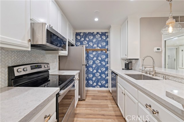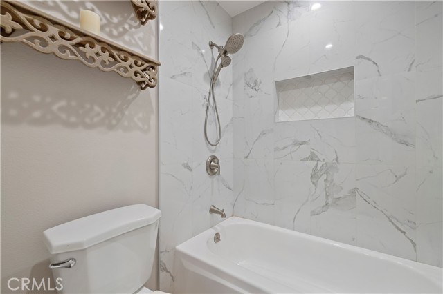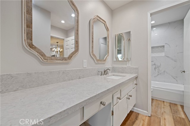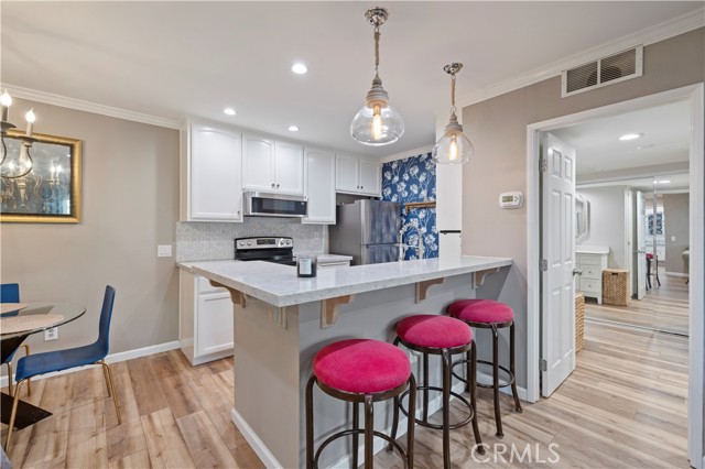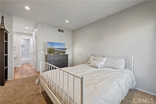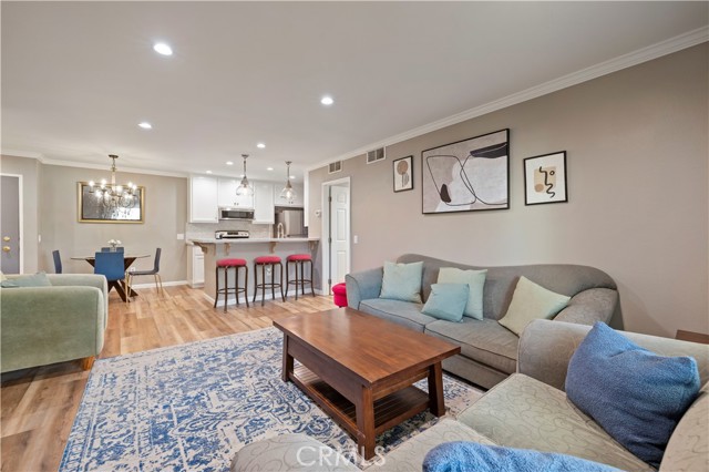 Welcome to this beautifully updated 2-bedroom, 2-bath upper-level condo in the highly sought-after Old Orchard community of Valencia. This bright, end-unit home features an open and airy layout with laminate flooring throughout (no carpet!), recessed lighting, and ceiling fans. The inviting living and dining areas flow seamlessly to a private balcony overlooking the pool — perfect for morning coffee or evening relaxation. The kitchen shines with quartz countertops and ample storage, offering both style and convenience for daily living. Both bedrooms are dual primary suites, each generously sized with plenty of closet space and their own bathrooms — ideal for privacy or shared living. With abundant natural light, a functional floor plan, and serene views, this home blends comfort, charm, and low-maintenance living in one of Santa Clarita’s most established neighborhoods. Residents enjoy resort-style amenities including a sparkling pool, relaxing spa, clubhouse, and tennis courts. All this, just minutes from shopping, dining, award-winning schools, parks, and easy freeway access. Don’t miss your chance to own this move-in-ready gem in the heart of Valencia — schedule your private showing today!
