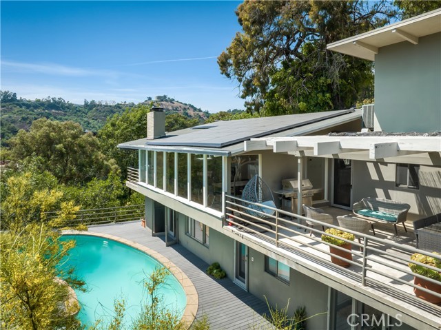 Discover a rare Beverly Hills rental tucked deep within the peaceful canyons of Benedict Canyon — where lush greenery, sweeping mountain views, and complete privacy create the feeling of a hidden retreat. Quietly set back from the street, this two-level home embodies the perfect balance between mid-century charm and serene modern living. Inside, light-filled living spaces flow effortlessly between the living room, dining area, and kitchen — all oriented toward captivating canyon views. The lower level features a spacious primary suite overlooking the pool, while additional bedrooms provide comfort and flexibility for guests or a home office. Thoughtful upgrades include Tesla solar panels. Step outside to your own sanctuary: a sparkling pool, expansive deck, and BBQ area that feel as though you’re floating above the canyon — ideal for entertaining, relaxing, or simply soaking in the tranquility. Mature trees and lush landscaping surround the property, enhancing its sense of calm and privacy. Though it feels worlds away, this hillside haven is just minutes from the best of Beverly Hills, Rodeo Drive, and Sunset Boulevard. Whether you’re seeking a quiet escape or a stylish base for city living, 2870 Benedict Canyon Dr offers a truly rare lifestyle — a retreat from the bustle, wrapped in the beauty of the canyon.