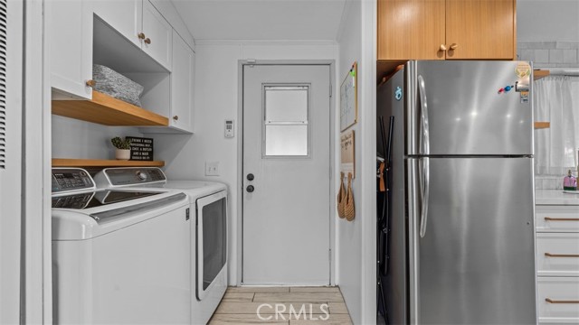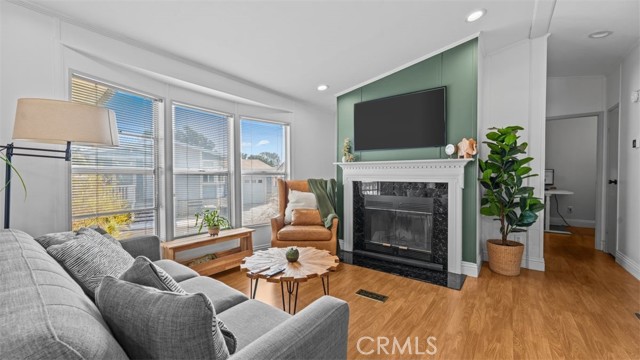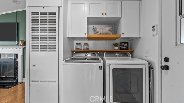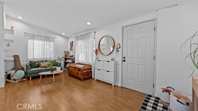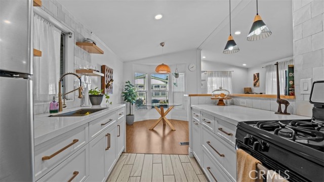 Welcome to this beautifully upgraded 2-bedroom, 2-bath mobile home in the highly desirable city of Brea! Step inside to an inviting open layout including custom rift-white oak and white cabinetry, quartz countertops with a waterfall edge, and a soft-close Blum hinges. The kitchen shines with pendant lighting, a built-in water filter faucet, and thoughtful storage touches like maple dovetail drawers, cutlery inserts, and a coffee pod organizer. Enjoy modern comforts such as dimmable app-controlled LED lighting, fresh interior paint, matte black Kwikset door hardware, and a new AC thermostat. The laundry area features a stylish new cabinet with a rift-white oak top. This move-in ready mobile home blends warmth, functionality, and contemporary design. A perfect fit for modern living in Brea! Schedule your tour today!