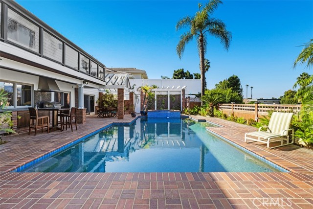 Welcome to 6421 E Bixby Hill Road! This stunning 3-bedroom, 4-bathroom property is a true Pool Home oasis, nestled on an expansive 10,173 sqft lot (est.) within the prestigious guard-gated community of Bixby Hill. A newly painted exterior welcomes you to the elegant double-door entry with a courtyard. Inside, you'll discover a bright family room featuring a cozy fireplace. The chef's kitchen is equipped with granite countertops and ample cabinetry, flowing seamlessly into the dining room with its convenient wet bar. The first floor also includes a laundry room, a full bathroom with shower, and a living room with a connected half bath.Upstairs, the primary suite is a luxurious retreat, boasting a second fireplace, a relaxing jetted spa, and a private balcony. The ensuite primary bathroom offers dual sinks, abundant counter space, and a substantial walk-in closet room. Two additional secondary bedrooms complete the upper level, including one with a balcony overlooking the backyard. Step outside to your backyard oasis, perfect for entertaining. It features a sparkling swimming pool, a built-in BBQ with a range hood, an inviting outdoor firepit, and generous patio space. Location is key! This prime location offers close proximity to Cal State Long Beach (CSULB), award-winning schools, beaches, shopping, bike paths, golf courses, and major freeways. Don't miss this opportunity in Long Beach's desirable Bixby Hill community!