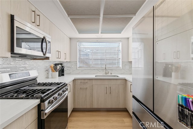 This beautifully updated townhouse is located in one of Lancaster’s most sought-after gated communities, and as soon as you step inside you’ll immediately recognize the owner’s true “Pride-Of-Ownership.” Here are just a few of its many other fine features: *You’ll step into a flowing 1,380 square foot open concept two story floorplan that is in “Move-In-Condition” with durable laminate flooring throughout *The spacious living room has an electric fireplace with heating vents, custom facade, newer custom mantle with self-closing hidden storage, contemporary black finished designer wall, and direct access to the lushly landscaped private backyard with entertainer’s patio *The family’s cook is going to truly appreciate the kitchen’s large garden window, abundant cabinets with counter lighting, ample quartz counters with full back-splash, deep basin stainless steel sink, built-in stainless steel appliances, and the convenience of the adjoining dining area *Both bedrooms have walk-in closets and share a beautifully appointed full “Jack & Jill” bathroom with 2 large mirrored vanities and newer fixtures; The main suite also has a private balcony *A total of 1½ bathrooms; The ½ bathroom is located on the first level for your guests *Functionally located laundry *Central heat & air for year-round comfort *2 car direct access garage with abundant storage cabinets and workbench *HOA pays for water and trash pickup *You’re going to enjoy the pet friendly community’s lush greenbelts, sparkling pool and soothing spa *Great location close to schools, parks, restaurants, grocery stores, shopping and the 14 freeway *Call now for all of the details and I’ll gladly arrange your private tour.