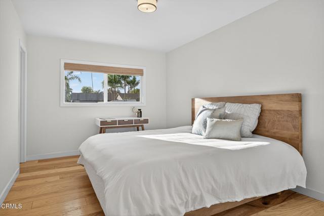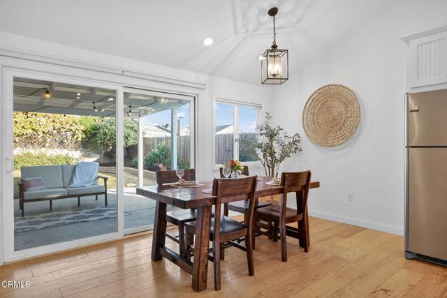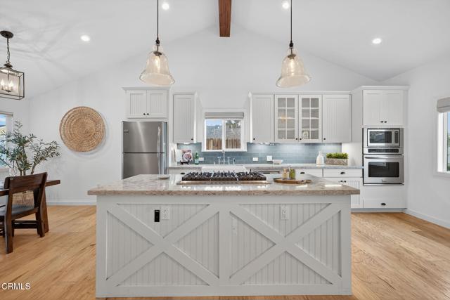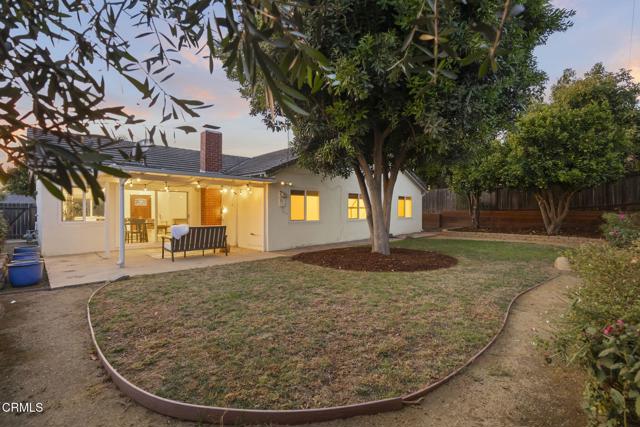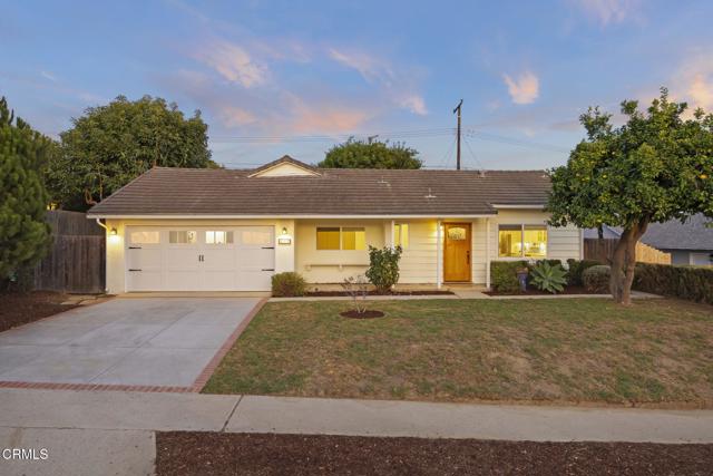 Perfectly positioned in one of Ventura's most desirable neighborhoods near Arroyo Verde Park, this beautifully updated single-story home blends elevated design with effortless everyday living. Designed with comfort and style in mind, this 4-bedroom, 2-bath home offers a bright, open layout enhanced by vaulted ceilings with a striking wood beam, recessed lighting, and rich hardwood floors throughout. The light-filled living room features a cozy brick fireplace and effortless flow into the dining area and kitchen, perfect for everyday living and entertaining. The kitchen is appointed with quartz countertops, beadboard cabinetry, pendant lighting, a stunning blue tile backsplash, stainless steel appliances, and a center island. All four bedrooms are well-sized, offering flexibility for a home office, guest room, or growing household needs. Both bathrooms are bright and clean with tasteful finishes. Step outside to an expansive backyard with mature avocado and citrus trees, lush landscaping, and plenty of space to garden, entertain, or simply enjoy Ventura's coastal weather. The covered patio creates a relaxing outdoor living area, and the extra-large yard offers endless possibilities. Located on a quiet, well-kept street close to hiking trails, Ventura College, restaurants, shopping, and the natural beauty the city is known for, this home blends extensive upgrades with charm, comfort, and an ideal Ventura lifestyle.