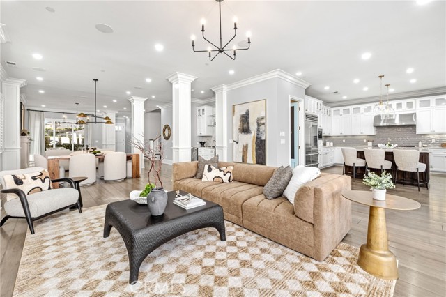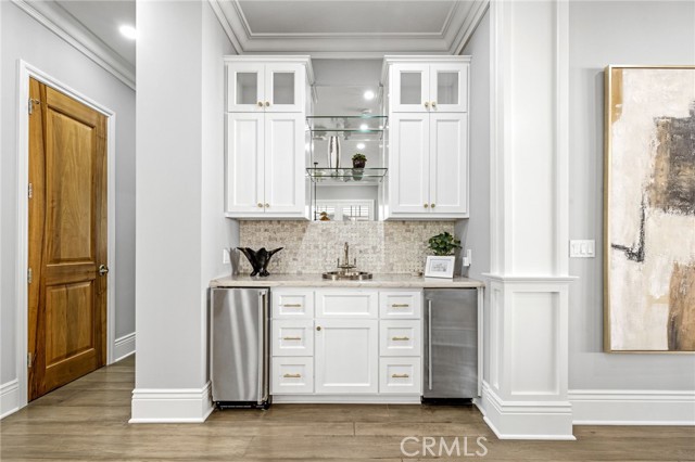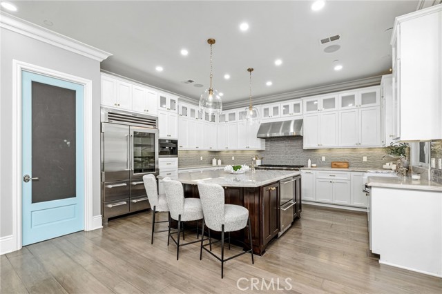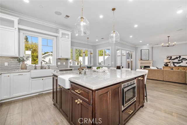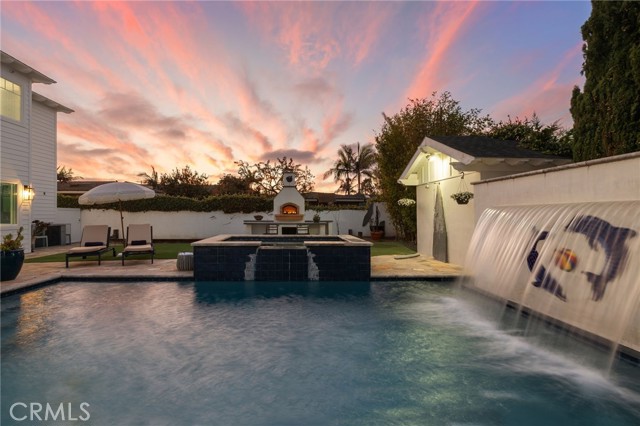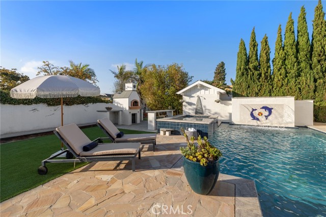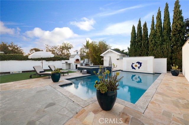 Discover a rare opportunity for refined living in this newly updated Manhattan Beach custom residence, thoughtfully refreshed with an interior designer's touch. Located on a desirable street, this home masterfully blends coastal elegance and functional design with its sophisticated interiors and a magnificent outdoor space. The property features 5 bedrooms and 4 beautifully appointed bathrooms in 4,431 sf of living space. Rich French oak floors and tasteful crown molding flow throughout, creating an atmosphere of warmth and timeless elegance. Modern amenities like an integrated sound system, outdoor security cameras, central vaccum system, a dedicated theater room, and a convenient laundry room, and a three-car garage enhance daily living. The stunning Chef's kitchen, designed for discerning tastes is appointed with high-end appliances such as a Sub-Zero fridge, a professional-grade six-burner Thermador stove, an integrated Miele espresso maker, a Villeroy & Boch prep sink, complemented by an expansive quartzite island, abundant counterspace, and a generous walk-in pantry. The property’s true highlight is the expansive, sun-drenched backyard—a rare Manhattan Beach feature. Surrounded by mature trees for privacy, this space is a resort-style paradise centered around a stunning heated pool and spa with a fun waterfall feature, outdoor shower, designated bathroom, bocce court, pizza oven, a spacious green area, and a comfortable seating space with a fireplace and TV. This property offers an unparalleled retreat from the daily hustle. It is a quiet, private legacy property where every detail has been thoughtfully considered to deliver the quintessential Manhattan Beach experience.