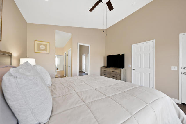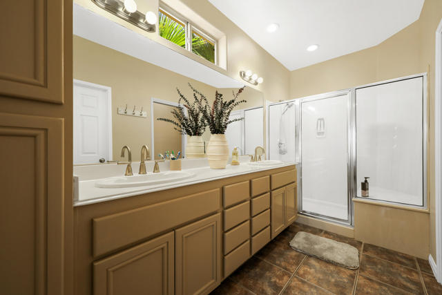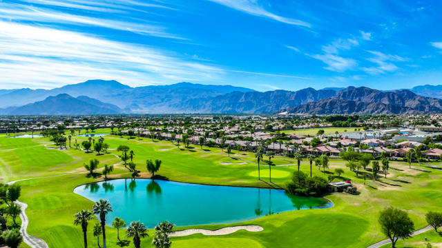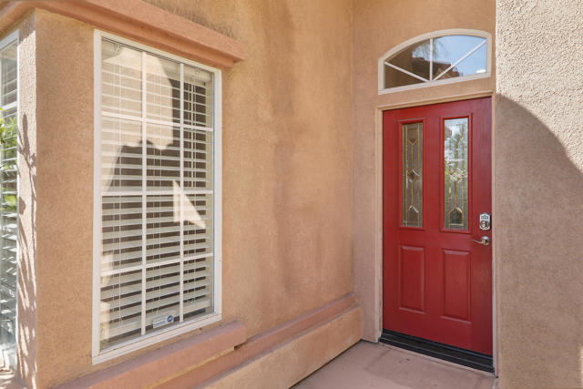 This seasonal rental is crisp & clean and a welcominghome to enjoy the weather in paradise! The view of the mountains in the morning sun is breath taking from the relaxing patio overlooking the free form pool. The beautiful wood patterned ceramic neutral color tile floors throughout are easy care and compliment the open floor plan. The kitchen with stainless appliances includes a gas range, granite slab counter tops opening to the living and dining areas; where all can all see the large 55'' television over the cozy fireplace. The spacious primary suite with king bed, TV and oversized closet with organizers offers ample space for your vacation attire & storage. The convenient attached bathroom has dual vanities and an enclosed shower. the first Guest suite has a queen bed and the second guest suite has twin beds. Both are located opposite side of the living area which offers guests privacy. A perfect lay out for golfers or family visitors. Individual laundry room with utility sink for easy clean up. Kick back, relax & ENJOY the best of the Desert weather. The oversized community pool & Fitness Center are located at the end of the street, for the serious swimmer or just sun bathing in a resort like setting. offering a oversized pool for the lap swimmer.