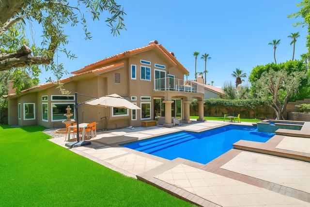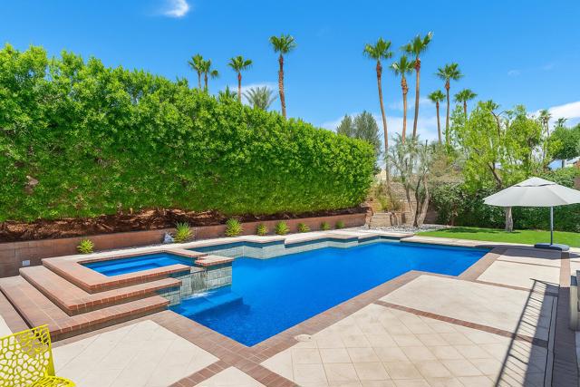 Welcome to your dream retreat in the heart of Palm Desert. This stunning 4-bedroom, 4.5-bathroom home blends sleek, modern design with the warmth of desert living--all located within the prestigious, guard-gated community of Desert Falls.Step inside to an open-concept floor plan featuring soaring ceilings, oversized sliding glass doors, and high-end finishes throughout. The gourmet kitchen boasts quartz countertops, premium appliances, and a spacious island--ideal for both casual meals and entertaining.Each bedroom includes its own en-suite bathroom, offering privacy and comfort for family and guests. The primary suite features a spa-inspired bath and direct access to the resort-style backyard.Outside, your private oasis awaits--complete with a sparkling pool, relaxing hot tub, lush desert landscaping, and multiple lounge and dining areas perfect for entertaining or soaking up the sun.Additional Features: Built-in electric vehicle charger Guard-gated entrance with 24/7 security Large, beautifully landscaped backyard Desert Falls community clubhouse & dining Fitness center, tennis & pickleball courts Resort-style community pool & spa Scenic walking paths and greenbeltsJust minutes from world-class golf, shopping, and dining, this home is perfect as a full-time residence or luxury desert getaway.