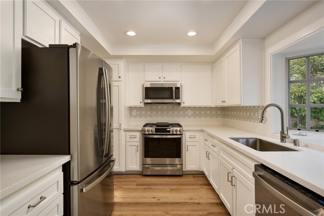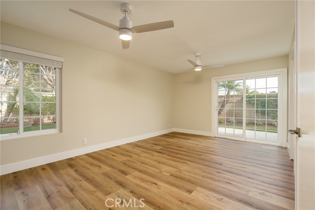 Newly remodeled home at the end of a cul-de-sac! Step inside to a spacious living room with high ceilings and a defined dining area. The bright, modern kitchen showcases quartz countertops and brand new GE appliances and opens to a comfortable family room, creating the perfect flow for everyday living. The downstairs primary suite offers privacy and comfort with dual sinks, a shower/tub combination, and direct backyard access. Just off the garage, a flex space provides the perfect spot for a home office, gym, or playroom. Upstairs features three bedrooms and a full bath, ideal for family or guests. Additional upgrades include new hardwood flooring, central A/C, a new washer and dryer, and an epoxy-coated garage floor. Enjoy the wraparound backyard with new landscaping—perfect for entertaining or relaxing. Located just minutes from the ocean, shopping, and top-rated schools, this beautifully updated home blends modern comfort with an ideal coastal location.