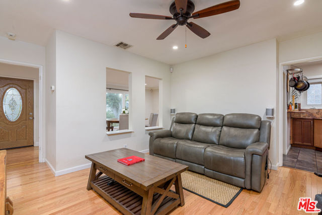 Tucked away in one of Lake Balboa's most sought-after neighborhoods, this charming three-bedroom, two-bath home offers both character and versatility. The light-filled formal living room features a large picture window, while the adjoining dining area and separate family room provide plenty of space for entertaining. A bonus room, currently enjoyed as a wine bar, could also serve as a home office, playroom, or creative studio. The kitchen comes fully equipped with stainless steel appliances. The backyard features a paver-covered patio, stunning palm trees, and multiple sitting areas that invite outdoor dining and relaxation. A driveway and two-car garage provide ample parking. With its convenient proximity to Lake Balboa Park, the Encino Farmers Market, local golf courses, and nearby dog parks well as easy access to the 101 and 405, this home combines comfort, convenience, and a prime location.