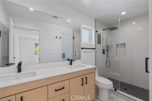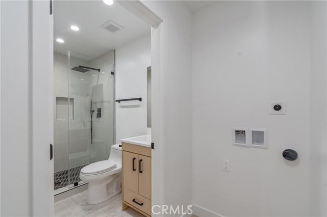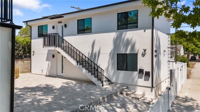 Welcome to 7439 Ranchito Ave – a brand-new all-electric residence combining modern design, energy efficiency, and elevated living on the second floor. This thoughtfully designed 2-bedroom, 2-bathroom unit features wide-plank flooring throughout, recessed lighting, and oversized windows that flood the space with natural light. The open-concept living and dining area flows into a stylish kitchen with quartz countertops, custom cabinetry, and stainless steel appliances. The primary suite offers a spacious closet with built-ins and a sleek en-suite bath with dual vanities, designer tile, and a frameless glass shower. A secondary bedroom and bath provide versatility for guests, family, or a home office. Both bathrooms are finished with contemporary details and matte black fixtures. Additional Highlights: All-electric unit with solar panels for reduced utility costs - Private balcony with tree-top views - In-unit laundry hookups - Central air & heat with modern ducting - Gated property with secured entry - Located in a quiet Van Nuys neighborhood near shopping, dining, schools, and freeway access, this home offers both comfort and convenience.