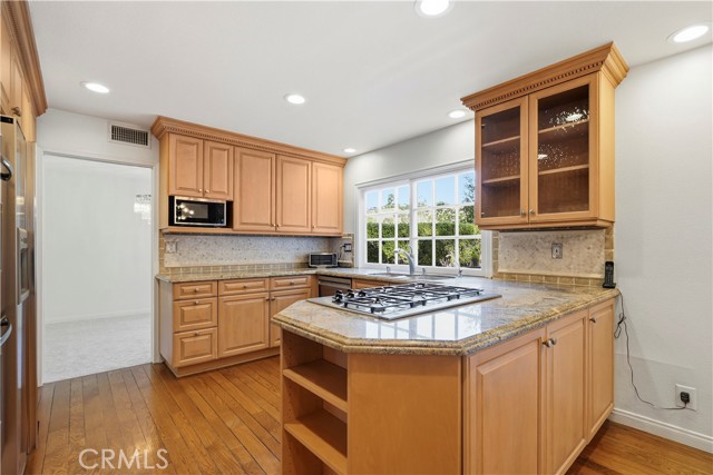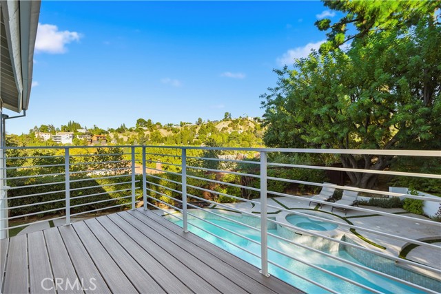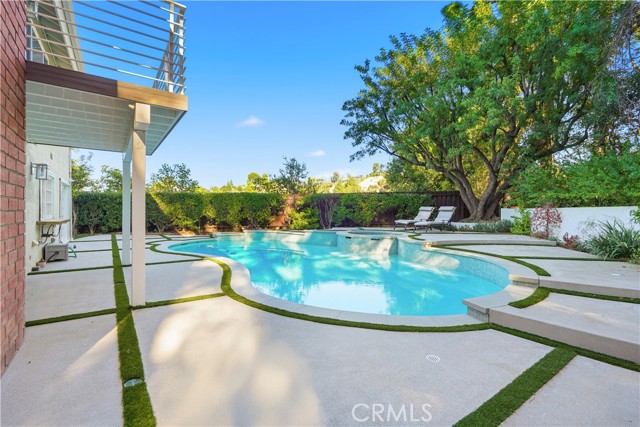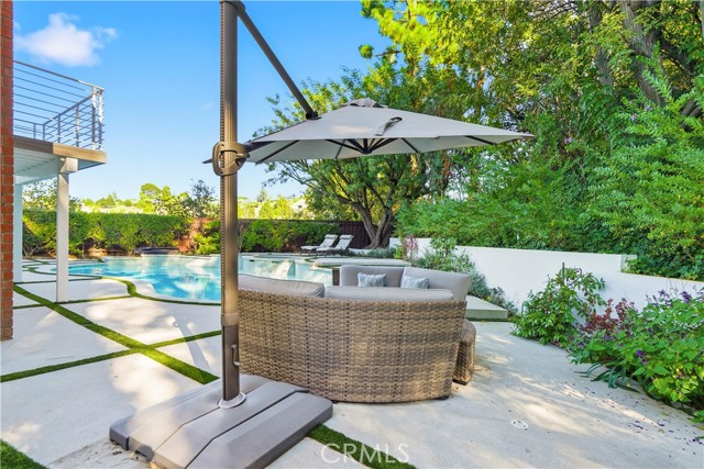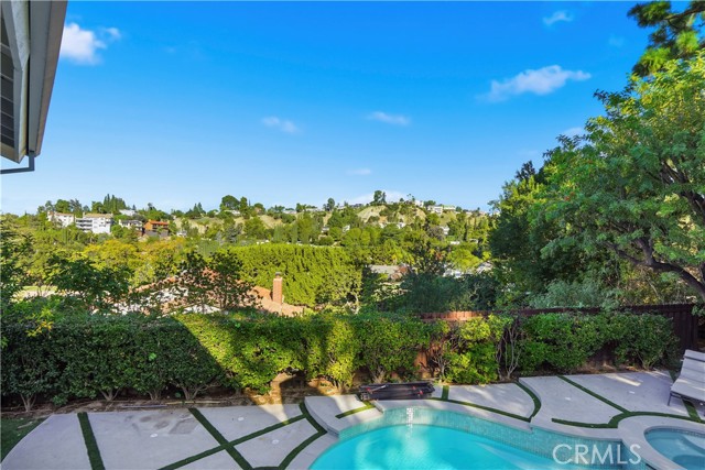 Nestled on a quiet, tree-lined street in Woodland Hills, this beautifully updated two-story traditional home perfectly blends comfort, style, and privacy. Filled with natural light throughout, this 2,418 sq. ft. residence features three spacious bedrooms plus a versatile fourth bedroom ideal as an office, gym, or guest space. Situated on an expansive 13,000+ sq. ft. lot, it offers the ideal California indoor-outdoor lifestyle. The inviting floor plan includes hardwood floors in the entry, kitchen, family room, and staircase. The bright, open kitchen seamlessly connects to a large family room with a cozy fireplace and is equipped with premium stainless steel appliances, including a Thermador five-burner cooktop, double oven, new Bosch dishwasher, and microwave. Recently remodeled bathrooms, new interior paint, and fresh carpeting create a stylish, move-in-ready ambiance. Enjoy endless relaxation and entertainment in the resort-style backyard, complete with a brand-new sparkling pool and spa featuring a waterfall, a spacious grassy area, and plenty of room for gatherings. Additional highlights include a two-zone HVAC system, Nest thermostat, pool safety fence, laundry room with washer and dryer, and a two-car garage. With close proximity to shops, restaurants, schools, parks, hiking trails, the 101 Freeway, and beaches via highway 27/Topanga Canyon Blvd, your private Woodland Hills retreat awaits!