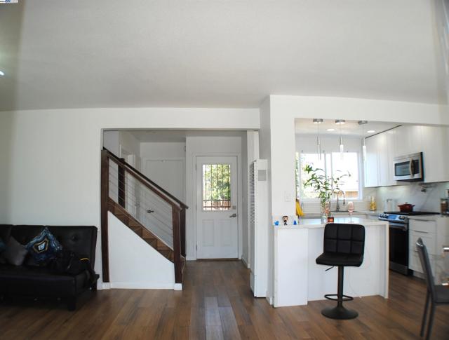 HUGE PRICES DROP*Unique home to love at first sight* Centrally located between San Francisco & San Jose*EZ access to 880*San Leandro BART est. only 2miles*Minutes from Oakland Airport*Major employer Kaiser Permanente, Port of Oakland, City of Oakland etc. large logistic hubs nearby*Nestled in a secure gated community with no HOA*Well designed custom a 2-story home*Charming front porch*Huge side yard for RV Parking*Modern open-concept living dining kitchen*The chef’s kitchen with quartz counters, a center island, stainless steel appliances, and recessed lighting*One bedroom and a full bath downstairs*The upper level has two bedrooms, a renovated full bathroom*Upstairs Laundry room*Upgrades throughout include luxury laminate flooring, fresh paint, custom ceiling lights, and stylish finishes*Tastefully manicured landscaped tranquil yard with many fruit trees*Perfect for relaxing, meditating and entertaining*A truly special home*Must see to appreciate*
