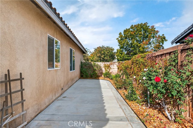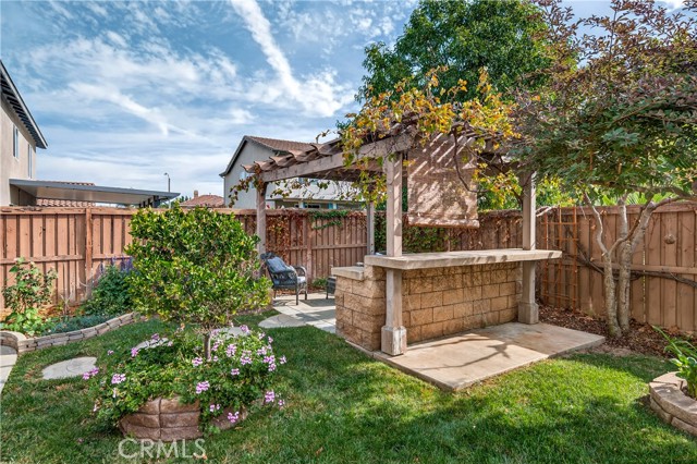 Welcome to 31619 Umbria Lane in the heart of French Valley, California! This beautiful Mediterranean-style single-story home offers the perfect blend of comfort, functionality, and charm. Featuring 3 bedrooms, 2 full bathrooms, and an inviting bonus/flex room, this home provides plenty of space for every lifestyle. Step inside to a bright, open entryway that flows into a spacious formal living and dining room, ideal for gatherings and hosting. The open-concept kitchen overlooks the family room and is designed for entertaining—complete with stainless steel appliances, quartz countertops with kitchen island featuring custom pullout shelving, abundant cabinetry, and a cozy fireplace that anchors the space. Enjoy the fresh feel of new interior paint, new carpet, and classic tile flooring throughout. Two generous guest bedrooms are conveniently serviced by a full guest bathroom, while the bonus room offers the flexibility to be a home office, playroom, or even a potential fourth bedroom. The primary suite is a true retreat, featuring a dual-sink vanity, separate soaking tub and shower, and a large walk-in closet. Step outside to a peaceful, private backyard designed for relaxation and outdoor living. You’ll find a lush grassy area, beautiful landscaping with mature fruit trees (mandarin orange, plum, peach, table grapes, and apricots), raised garden planters, and a spacious concrete patio complete with a shaded pergola and bar-height countertop—the perfect place to entertain family and friends. Additional side-yard space offers even more room for storage. A rare single-story in a highly desirable community in close proximity to Temecula Wine Country, top-rated schools, shopping/dining, parks, and amenities, this home offers both convenience and quality of life. Don’t miss your chance to own this stunning French Valley gem—opportunities like this don’t come often!