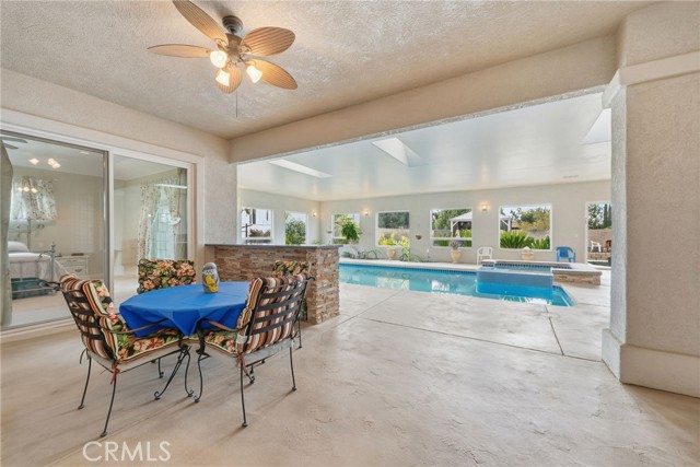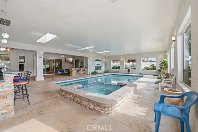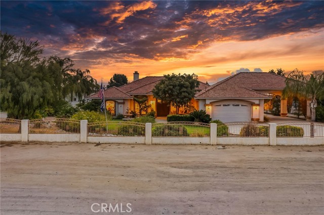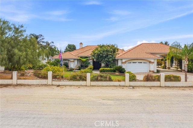 Discover unparalleled comfort and craftsmanship in this custom-built 5-bedroom, 3-bathroom, 3,015 sq. ft. single-story estate home set on a picturesque 1-acre lot at 27951 Patti Lane in Menifee, CA. This exceptional residence blends luxury, space, and versatility—perfect for those seeking both refined living and room to grow. Step inside to soaring 20-foot ceilings, elegant tile flooring, and granite countertops throughout. The floor plan is masterfully designed with oversized rooms, including a formal dining area, a spacious great room with a cozy fireplace, a separate den, and a charming breakfast nook. The expansive chef’s kitchen is the heart of the home, featuring abundant cabinetry, a walk-in pantry, gleaming granite counters, a large breakfast bar with stylish pendant lighting, and generous workspace for culinary creativity. A rare highlight of this home is the indoor pool and spa, offering year-round enjoyment. Whether hosting lively gatherings or savoring peaceful evenings, this space—complete with a built-in barbecue and dedicated dining area—creates the perfect setting for unforgettable moments. Outdoors, the property continues to impress with an enclosed backyard featuring a gazebo, along with a HUGE lot offering endless possibilities for a second residence, workshop, equestrian amenities, RV and equipment storage, or anything your lifestyle requires. Car enthusiasts and hobbyists will love the convenience of two separate fully finished 2-car garages, each with pristine epoxy floors. This extraordinary property is packed with custom features—far too many to list—and truly must be seen to be appreciated. A rare opportunity to own a one-of-a-kind estate with luxury, space, and freedom all in one.