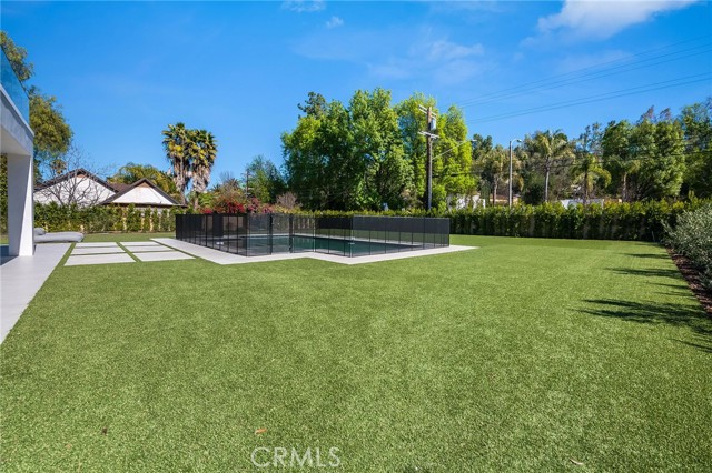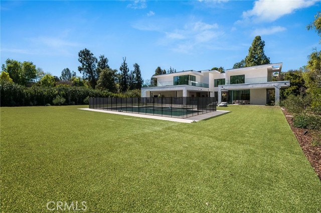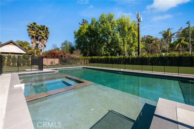 Gorgeous 8000 ft.² Sprawling Modern New construction home South of Boulevard! Fully furnished, this home is truly a showstopper!!! Fully gated and secure, this signature home is located on a lovely peaceful street in Tarzana. This home has the WOW! The stunning entry introduces the modern elegance resonates through the space, greeted by wall of glass opening up to the drive expansive backyard. With soaring ceilings and large living spaces, this home is Engineered for entertaining and family gathering. The kitchen is the refined and spacious anchor, facing a gorgeous 10 seat dining table. Sink into the expansive casual family room that opens into covered back patio, or choose the most intimate bar area to entertain, lounge and relax. All the bedrooms outfitted with king size beds, including the downstairs guest, which afford privacy and convenience. Upstairs you will find a designated comfortable workspace with adjoining balcony and seating area, a luxurious primary suite with 2 walk in closets and wrap around balcony. All the secondary bedrooms are large beautifully appointed, with walk-in closets. The backyard and pool area provides a variety of different lounging areas and dining alfresco is a must! A gorgeous, sparkling pool and space to entertain and enjoy is priceless! 12-month lease, with short-term options open for discussion.