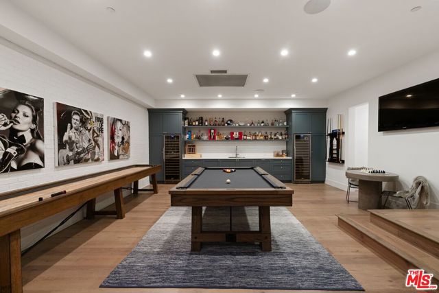 Luxury Brentwood Living. Less than 5 minutes above Sunset, discover this fully furnished or unfurnished, 5-bedroom, 9-bathroom masterpiece for lease in the heart of Brentwood a true sanctuary offering the best of Los Angeles living. The expansive main floor features high coffered ceilings, two elegant fireplaces, and seamless indoor-outdoor flow, creating a tranquil yet inviting atmosphere. The fully stocked gourmet kitchen is a chef's dream, boasting stainless steel appliances, a walk-in pantry, and marble finishes. A main floor office features abundant natural light and is perfect for work from home zoom meetings. The primary suite is a retreat unto itself with soaring 15-foot ceilings and dual spa like baths, outfitted with stylish Grohe fixtures. Upstairs, you'll find three additional bedrooms, each with its own ensuite bath, offering privacy and comfort. A fifth bedroom guest suite is tucked away on the first floor, providing a quiet and private space for visitors. Entertainment is effortless with a luxurious screening room featuring plush cloud couches and a popcorn machine. The game room includes a sleek bar and a versatile billiards/ping pong table ideal for hosting guests. A portion of the garage has been converted into an incredible Pilates, yoga, and fitness studio, complete with reformers, padded flooring, and a punching bag perfect for maintaining your fitness routine without leaving home. Throughout the home, pristine European oak hardwood floors add warmth and sophistication. Step outside to your private outdoor oasis, complete with a sparkling pool, spa, built-in BBQ, cozy fire pit, and ample space for both play and dining al fresco. A flawless blend of luxury, comfort, and thoughtful design, this Brentwood estate offers spacious living, top-tier amenities, and seamless indoor-outdoor flow the perfect sanctuary for both relaxation and entertaining.