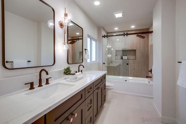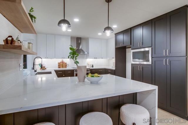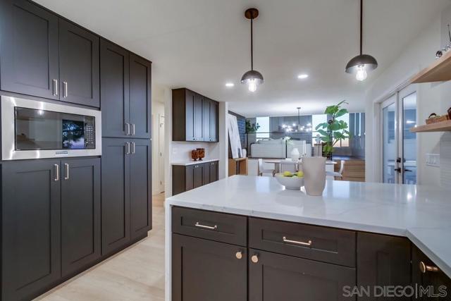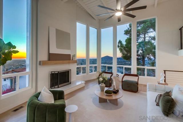 If you've ever dreamed of living on a mountaintop with view of the entire city, ocean, and Coronado Islands then look no further. The views from the top of Grossmont Knoll are something you have to see to believe and are accentuated masterfully with floor to ceiling sunset windows and decks. This spacious home on 3/4 of an acre is a true entertainers dream! Features include a large great room with 18 high open beam ceiling, large dining, open concept kitchen with views, bar seating, quartz counters and SS appliances. EVERY room in the house has magnificent views and sliders that open to over 1400 sf of patios that all have jaw dropping views to the ocean. Large primary suite with walk in closet, spa like bath, and it's own private deck make for the perfect retreat from the hustle and bustle. The icing on the cake is the separate unit with it's own 700sf deck, the perfect place for guests or rental income. The large open property has an access road at the bottom, with potential for more future development. Don't miss the once in a lifetime property!