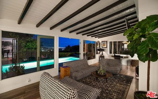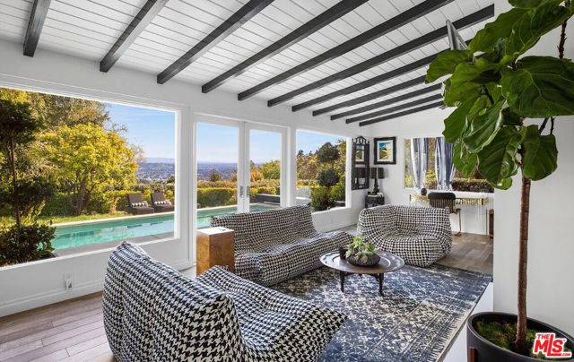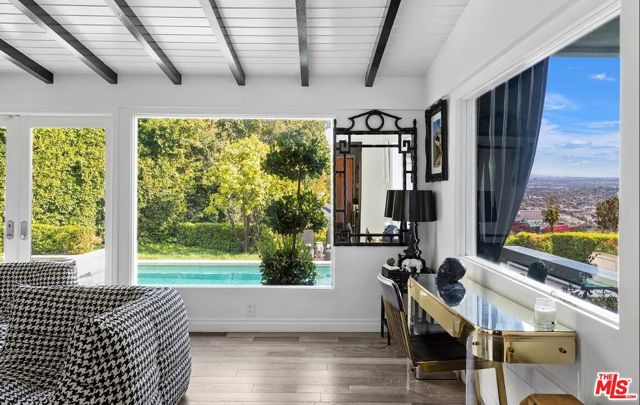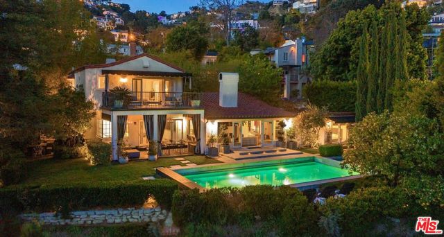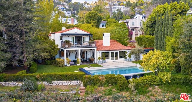 Available full-furnished and turnkey for short or long-term rentals! Off Sunset Plaza down a semi private lane, with an entrance located on a private side street off the main road offering a secluded entrance and more parking, discreetly walled and gated overlooking city-light views, this stunning furnished three-bedroom, three-bathroom, plus 1 bed and bath guest cottage, classic 1920s Spanish home is perfectly blended with modern finishes. The living area boasts incredible volume, a dual-sided fireplace, and doors to the enclosed veranda, blending indoor and outdoor spaces and creating the ideal space for entertaining. The formal dining room opens to a covered patio and lava stone floors. Pro-style kitchen, elegant Valcucine cabinets with seamless built-in refrigerator and breakfast area. The primary suite opens to a private balcony overlooking the city below. The second and third bedrooms feature ensuite updated baths. Step outside to tranquil gardens, a garden with a grassy area, grassy yard, resort-style pool, spa, outdoor pool shower, outdoor shower, and an attached separate guest room off the pool area with a bathroom. Additional outdoor amenities include a ping pong table. Total of 4 bedrooms in the property. This home is available furnished & Turn-Key with high end designer furniture and art.