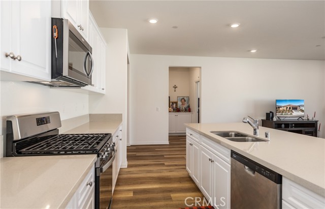 Honey Stop The Car!!! Welcome to 19778 Limon Court in the new community of Spring Mountain Ranch located in Riverside. This single story home was built in 2023 by KB Homes and is Energy Star Certified with water-smart landscaping in the front yard. Your new home offers stunning mountain views and an amazing open floorplan with 2,507 square feet of living space and is in immaculate condition. 4 spacious Bedrooms and 2.5 Bathrooms which provide enough room and privacy for any family or guests. This modern Floorplan has a separate Den/Study, a Formal Dining Room and an Open Kitchen to the Great Room. The Kitchen has a large center island perfect for family or social gatherings, Quartz Countertops, ample cabinet and cupboard space and a walk-in Pantry. The home offers a split floorplan which means the Primary Bedroom and Primary Bathroom are separated from the rest of the 3 bedrooms. The primary bedroom features its own en-suite with a large walk in closet, large shower, separate soaking tub and a spacious double sink vanity. The 3 additional bedrooms are a comfortable size and share a full bath. The Laundry Room is located inside for added convenience. The 2 Car finished Garage is attached to the home and has direct interior access. Tankless Water Heater. Backyard has Vinyl Fencing for privacy. Owner will include the washer, dryer and refrigerator. This new home community borders Grand Terrace and the Blue Mountain area. Within Walking distance to several parks and hiking trails. Just a couple minutes to the 60/215 Freeway and to shopping, services and schools. Prestigious neighborhood!!