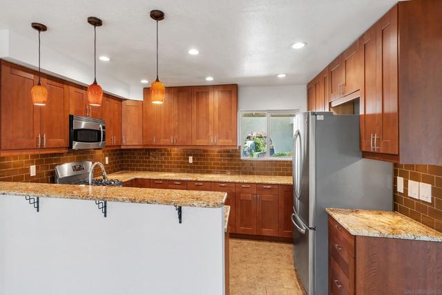 Updated 4-bedroom, 2-bath home in a desirable San Marcos location. This well-maintained property features a newer kitchen with granite countertops, stainless steel appliances, and ample cabinetry. Functional floor plan with 2 bedrooms on the entry level and 2 bedrooms upstairs. The private backyard offers a paver patio and lawn area—ideal for outdoor enjoyment. Gardener included. A bonus patio room off the kitchen/dining area provides additional flexible space (not included in square footage). Attached 2-car garage. Conveniently located within walking distance to a community park and San Marcos elementary and middle schools. Pets considered with additional deposit. Tenant responsible for all utilities.