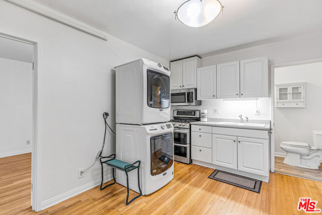 Welcome to your own tucked-away retreat in the heart of Santa Monica. This lower-level gem offers all the charm of a vintage bungalow with the practical perks of modern living. Step into a cozy living area with wood floors and a cozy vibe, then take a few steps up into the sunlit kitchen and bedroom. Yes, a multi-level layout for added character! The kitchen is crisp and white with ample cabinet storage and stainless steel appliances (brand new fridge coming soon!), plus your very own washer and dryer, so laundry days just got a whole lot easier. The bathroom has been freshly remodeled and feels sleek and contemporary, with updated tile, fixtures, and a clean design. The bedroom is spacious, peaceful, and filled with natural light, and the mirrored closet doors help make the space feel even more expansive. Out front, you'll find leafy shared pathways and a friendly, small-community atmosphere -- perfect for those who love a little privacy without feeling isolated. Located just off Ocean Park Blvd, you'll have quick access to Santa Monica hot spots like Bob's Market, Layla Bagels, and Clover and Marine Parks. A rare find with style, function, and personality all wrapped into one.