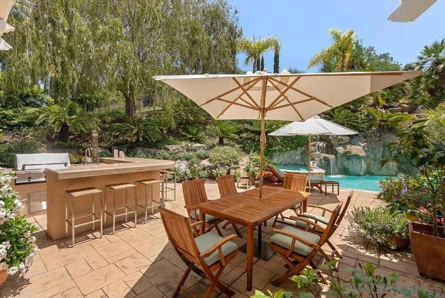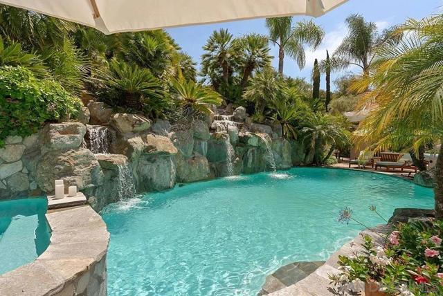 Welcome to your private resort-style escape inside the exclusive Del Mar Country Club in Rancho Santa Fe. This fully furnished luxury estate combines modern sophistication with exceptional comfort, offering breathtaking views, beautifully renovated interiors, and seamless indoor–outdoor living. Floor-to-ceiling windows frame the golf course and tranquil pond in front, while peaceful nature reserve views create total serenity in back. The open layout is ideal for relaxing, working remotely, or entertaining in style. The home comes turn-key with high-end designer furnishings. A newly reimagined chef’s kitchen features Sub-Zero, Wolf, and Thermador appliances and is fully outfitted for cooking and gathering. New wide-plank wood flooring, upgraded HVAC system, whole-house water filtration, dual-battery solar backup, ultra-fast CAT6a wiring, and an LG laundry suite contribute to an effortless, elevated living experience. Outside, the estate lives like a five-star private resort. Enjoy a sparkling pool and spa with automated chlorine-minimizing technology, cascading waterfalls, lush landscaping, a full outdoor kitchen and bar, gazebo with fireplace, and multiple patios for lounging or dining al fresco. Designed for quiet relaxation and memorable gatherings, this rare garden setting is one of the largest and most beautifully maintained within Del Mar Country Club.