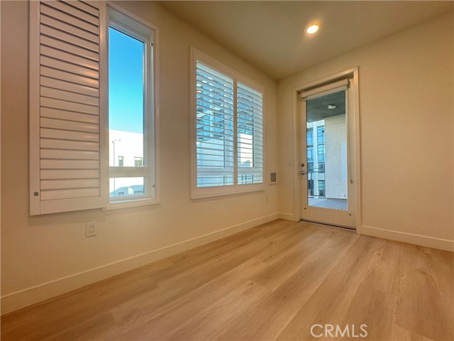 Easy to show! New flooring and white wood shutters has 2 parking spots. This 1-bedroom 1-den 1.5-bath single-story condo includes a living area featuring a great room, dining room, outdoor deck, and gourmet kitchen with plenty of counter space. The master suite comes a king-sized bed equipped with a walk-in closet, laundry cabinet. The other room has a full-size bed and a desk. Home is furnished with refrigerator, washer, and dryer. Membership to the community state-of-the-art fitness center is included. The quiet unit is conveniently located near the elevator and its two (2) assigned parking spaces are closest to the elevator in the building's secure garage. Close to Fwy 405, Jamboree. Short drive to UCI, Irvine Spectrum Center, Fashion Island, South Coast Plaza.