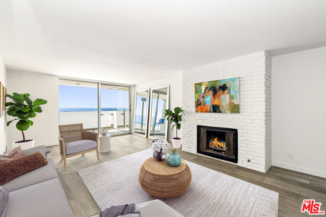 Ideal Ocean Front Location on the Marina Peninsula with an oceanfront primary + direct beach access - approximately 2,061 sqft of living space across 2 stories! This home features 2 bedrooms, 2.5 bathrooms, a large private ocean front balcony - tons of light, bright, open space, along with oversized windows, recessed lighting, and tile flooring throughout. The spacious kitchen comes complete with wooden cabinetry, plenty of counter and cabinet space, and stainless appliances that include a refrigerator, range/oven, microwave, and dishwasher. The living area boasts a decorative floor-to-ceiling brick fireplace, a wet bar with built-ins. Enjoy elevated indoor-outdoor living with sliding glass doors that open to a big balcony with stunning coastline views. Upstairs the enormous oceanfront primary bedroom has its own extraordinary ocean views and natural lighting with a wall of floor-to-ceiling windows, as well as a separate walk-in closet plus an extra closet with sliding mirrored doors, and ensuite bathroom with two vanities and a tiled shower-over-tub. The second bedroom also has a closet with sliding mirrored doors, as well as its own private entrance. Off the stairway hallway upstairs are extra linen closets and a full bathroom, and a powder room on the main level. Amenities include 3 assigned parking spaces in the building's attached gated garage, along with extra storage, controlled access, intercom, elevator, and mail area. Close to Abbot Kinney Blvd, just south of Washington Square's popular dining and shopping, and near all the Marina del Rey and Venice have to offer!