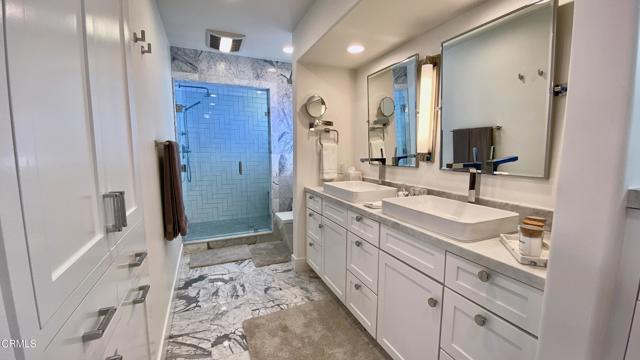 Discover the epitome of seaside luxury with this exquisite Silver Strand beach house, just steps from the sand. Three bedrooms, including a king-sized and two queen-sized beds, this tri-level oasis spans nearly 2,100 square feet. Immerse yourself in the coastal lifestyle with an impressive rooftop lounge perfect for watching the sunset over the ocean. Every detail within this dwelling is carefully curated, featuring designer furniture that complements the house's aesthetic perfectly. The open floor plan is a masterpiece of design, radiating a beachy-chic ambiance through a neutral color palette. Situated just steps from the flawless Silver Strand beach and adjacent to a sand volleyball court, this home offers breathtaking views of the ocean at sunrise and sunset. Indulge in a variety of coastal activities, such as surfing, fishing, kayaking, swimming, boogie boarding, jet skiing, and leisurely beach walks. Explore the charming town, complete with coastal bike paths, nearby restaurants, hotels, and attractions at the Channel Islands Harbor. Completely renovated in 2018 and a thoughtful refurnishing in 2020. Built in 1981, this 2,085 square foot home spans multiple levels. The lower level comprises two bedrooms, one bath, a den with a pull-out queen sofa bed, and an expansive side yard with an outdoor shower. Ascend to the upper level to find a spacious living room with a queen-sized pullout sofa, a chef's dream kitchen with Wolf appliances, a Sub-Zero refrigerator, custom shelving, beautiful shaker cabinets, and Carrera marble counters. The warm and inviting primary bedroom, also on the second level, features woven light wood blinds, a ceiling fan, and a luxurious private en-suite bath with an impressive tiled shower, dual sinks, and custom built-ins. The primary bedroom opens onto an extravagant rooftop deck with stunning ocean views, multiple seating and dining areas, and a firepit, making it the perfect spot to unwind and relish in the coastal beauty.