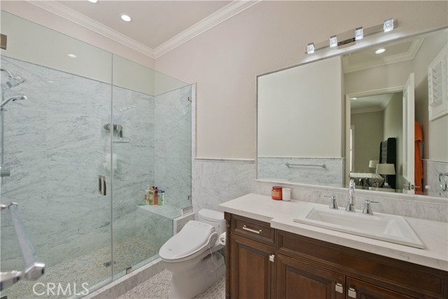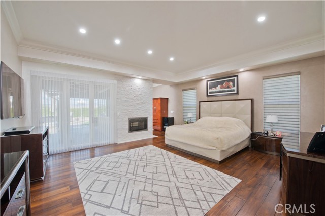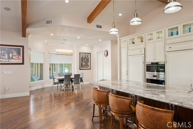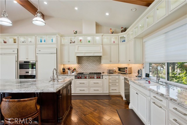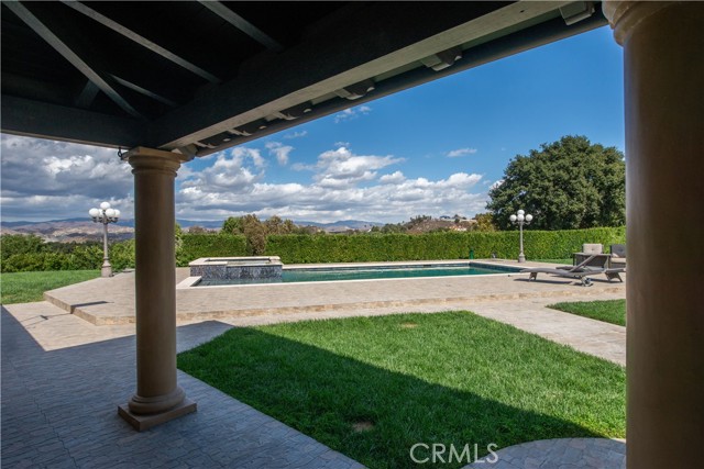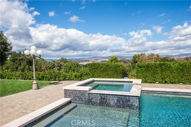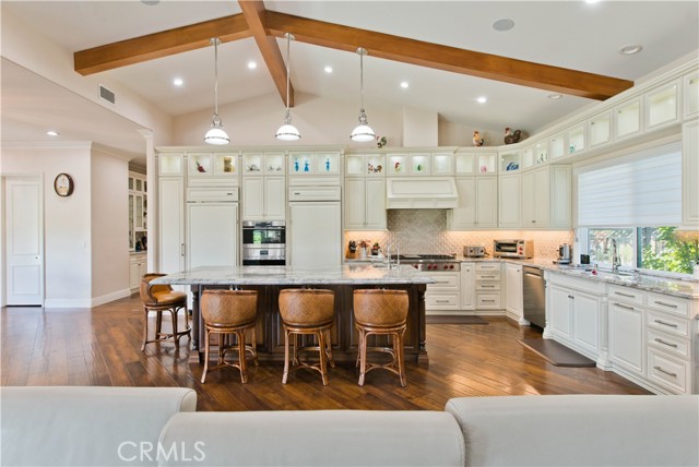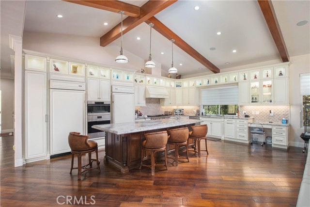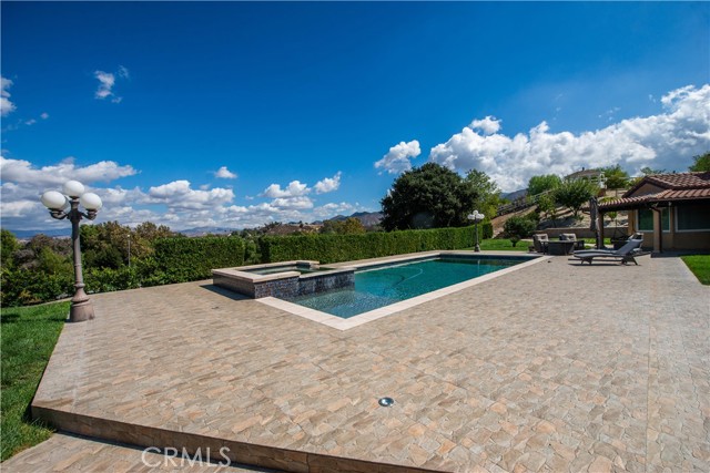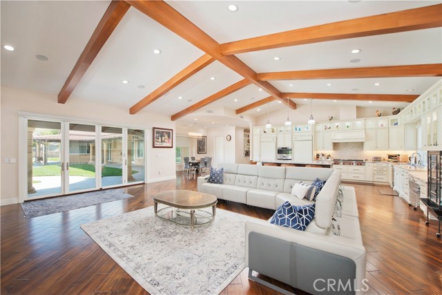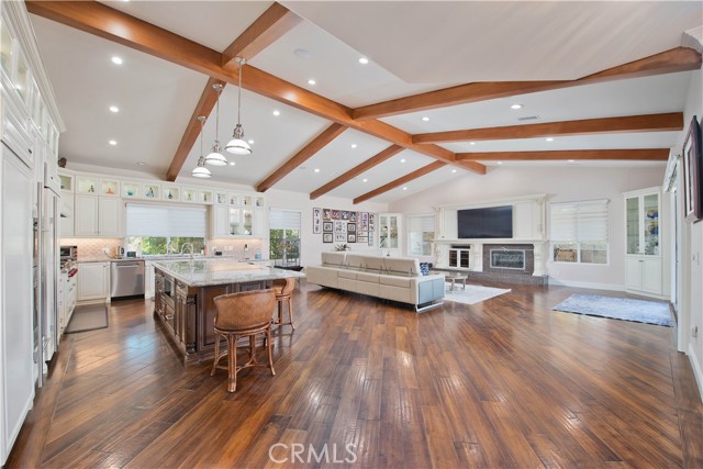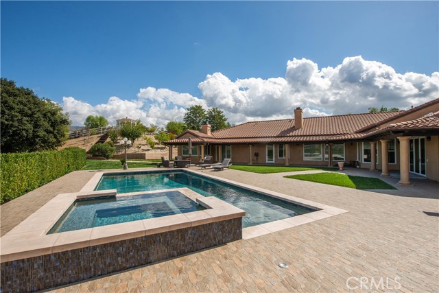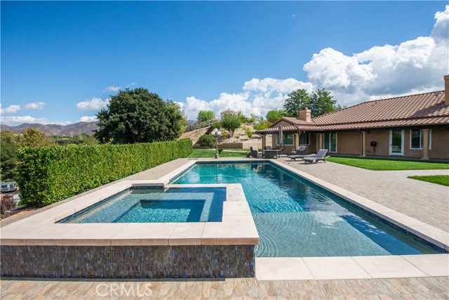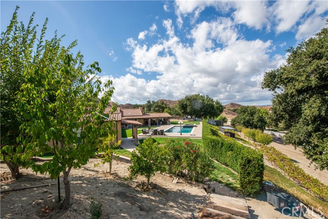 Experience refined California living in this beautifully appointed and rare 5-bedroom single-story home located in the highly sought-after gated Sand Canyon community. You'll be in the upper level main house on a 2.6-acre view lot—half on a lower level ideal for horses, a vineyard, or an orchard—this estate offers exceptional space and versatility. A gated courtyard entry leads to a formal living room with sweeping mountain views and a spacious family room with high ceilings, hardwood floors, a brick fireplace, and French doors to the backyard. The kitchen features double islands, pendant lighting, a bay-window breakfast area, and a walk-in pantry, with a butler’s pantry connecting to the dining room. The primary suite includes a sitting area, fireplace, mountain views, and two walk-in closets. Outside, enjoy a serene backyard with a sparkling pool, expansive patio, and multiple lounge areas—ideal for relaxation and outdoor gatherings. A 4-car garage and full vinyl fencing complete the property.