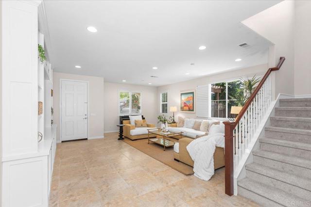 For short term lease (minimum 30 days) nearly fully furnished and fully equipped (1 to 3 months). Available Dec. 1. 2025. Also available for purchase ($1,375,000). Desirable Terraza Home in San Elijo Hills. Gorgeous curb appeal, beautifully upgraded and eco-conscious with owned solar, this spacious residence offers 3 bedrooms plus a dedicated office area and 2.5 bathrooms, 3 car garage - built in 2010 and boasting 2,182 Est. SqFt. The gourmet kitchen features granite countertops, stainless steel appliances, and a center island opening to an inviting family room with fireplace - perfect for everyday living and entertaining. The dining and living room combination showcases elegant tile flooring and custom built-in cabinetry. Upstairs, enjoy laminate wood flooring throughout, including the office/desk area, with tile in the bathrooms and laundry room. The expansive primary suite includes walk-in closet and a tranquil bath with soaking tub, dual sinks and walk-in shower. Custom built-in cabinetry is thoughtfully integrated throughout the home. Additional highlights include ceiling fans, air conditioning, tankless water heater and fully paid solar system for energy efficiency. Set on a private, pool-sized lot, the outdoor space features a large patio, spacious lawn, raised play area, and mature landscaping - ideal for entertaining, relaxing and play. The tandem 3-car garage includes overhead storage racks for added utility. Washer/Dryer/Fridge and Solar System are included. Located within the boundaries of the highly desirable Double Peak School. The San Elijo Hills community features: - Top-rated schools - Ball parks & soccer field - Picnic areas & playgrounds - Dog park & community center - Town center with stores and shops, restaurants and eateries, 18 miles of scenic trails & a 19-acre park - Over 1,000 acres of open space. Enjoy the Southern California Coastal lifestyle, a short drive to the beaches and everything San Diego County has to offer. Seller to select services. All MLS and marketing information is approximate and not guaranteed.